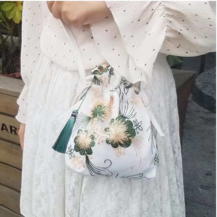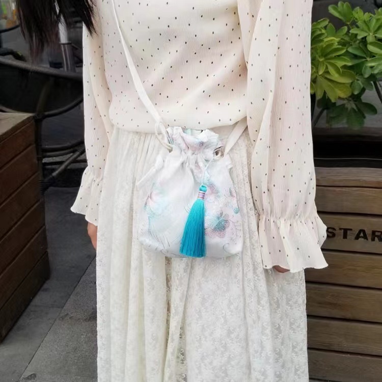 ⑧ミニバッグ 中華風かばん 和装刺繍巾着バッグ オシャレクロスボディ ショルダー 和風 チャームタッセル付き