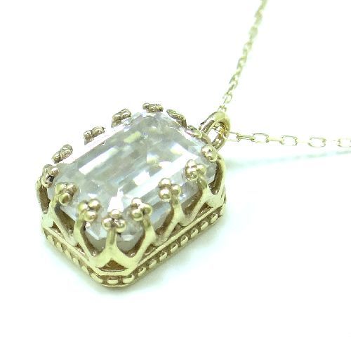 K10 モアサナイト オクタゴン 1.8ct クラウン ペンダント ネックレス 40cm ジュエリー WG YG ゴールド ホワイトゴールド 王冠 6x8 箱付き