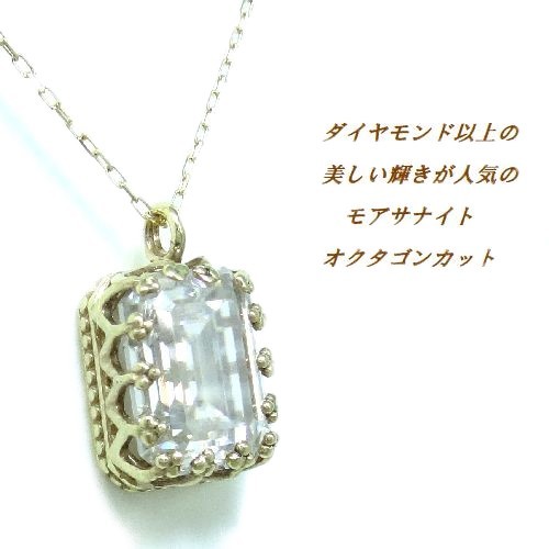 ダイヤモンドの代わりとして世界的で注目を集めているモアサナイトのオクタゴンペンダントネックレスです。