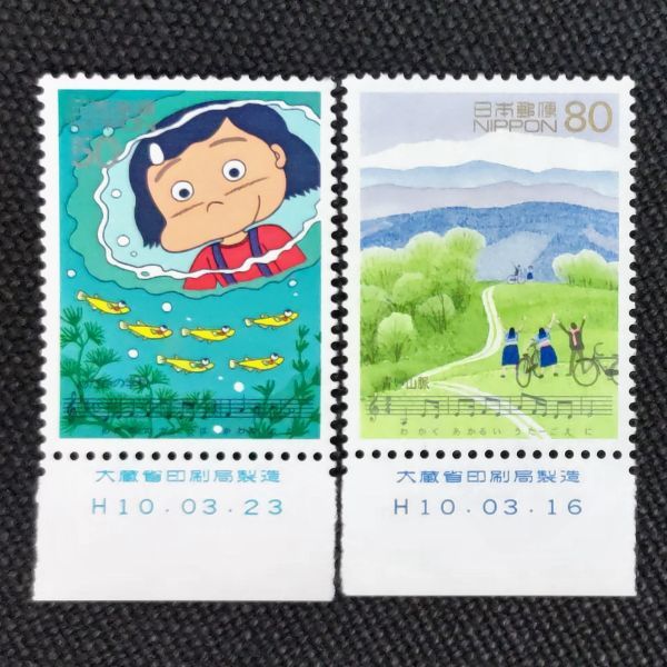[23081706]【わたしの愛唱歌・第4集】単片2種 銘版付「メダカの学校・青い山脈」50円+80円 1998年発行 私の愛唱歌 *