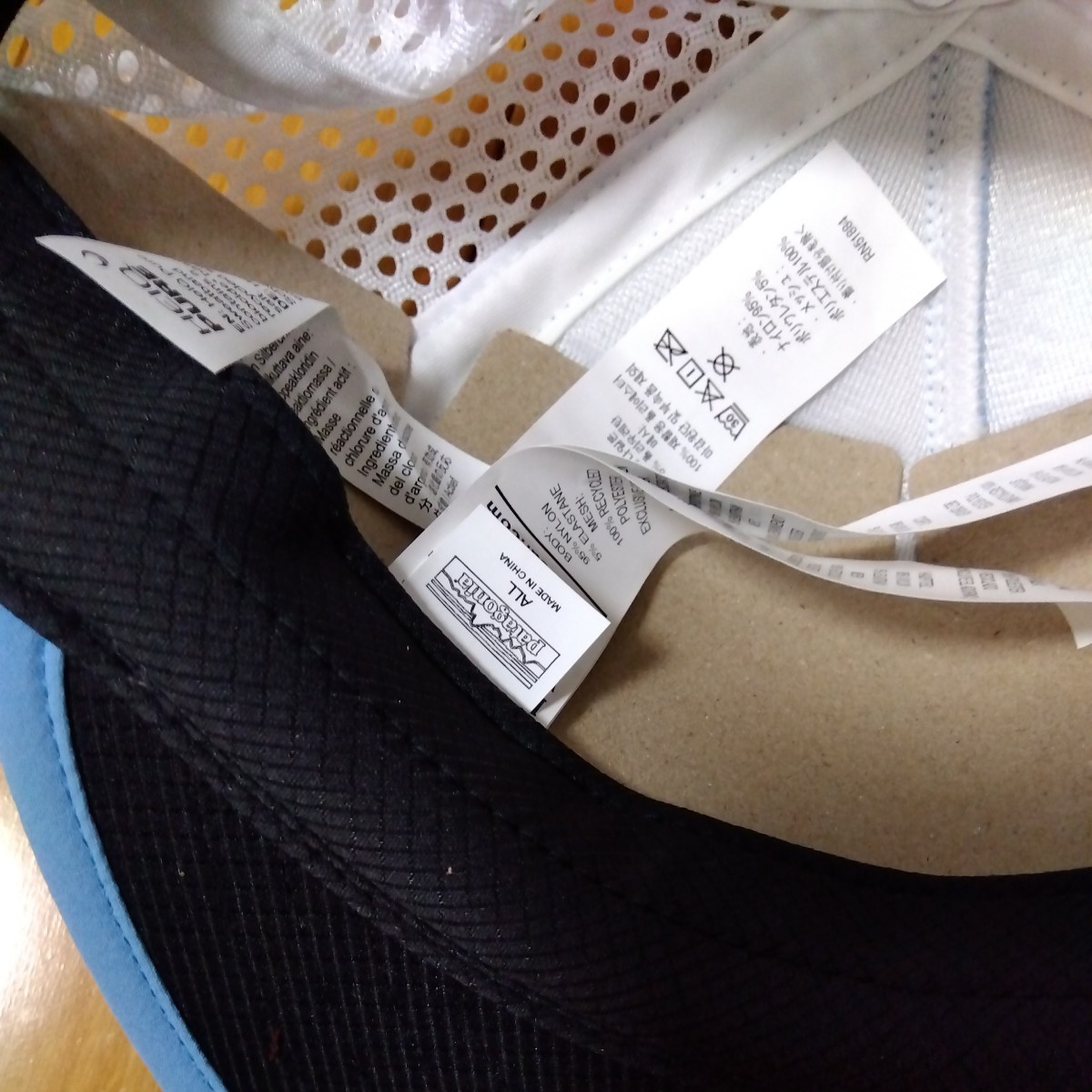 前頭部とつば:4.2オンス・ナイロン95%(リサイクル・ナイロン65%)/ポリウレタン5%。