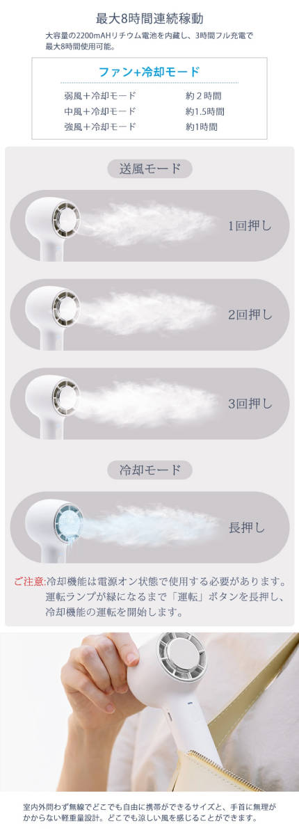 連続使用時間:約3~8時間(ファンのみ使用時)