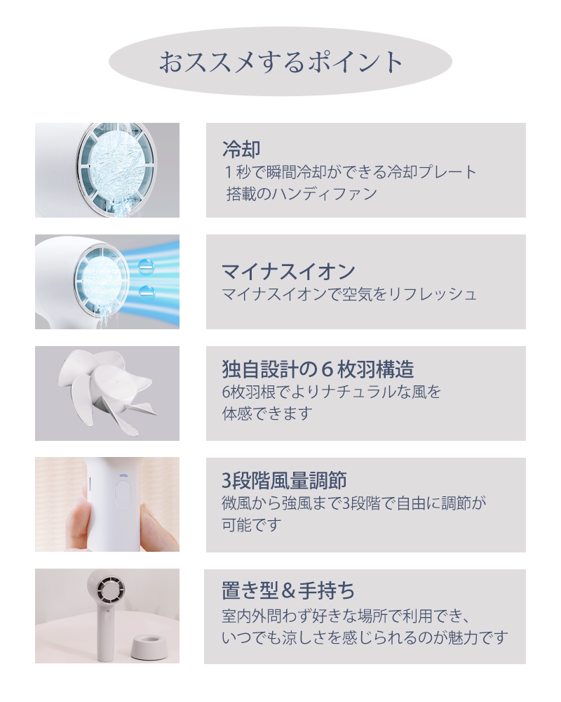 ハンディファン 扇風機 冷却プレート 瞬間冷却 マイナスイオン ハンディ扇風機 携帯 卓上 扇風機 手持ち 卓上 2WAYデザイン 静音 ファン 小型 usb 扇風機 おしゃれ 充電式 ポータブル扇風機 ファン 花火大会 持ち運び バッテリー内蔵