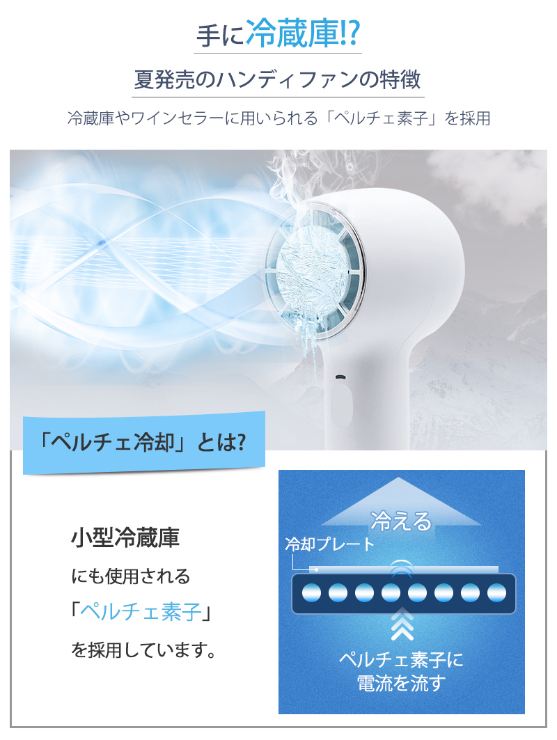 持ち歩ける涼風!美顔器&手持ち&卓上 冷却プレート搭載・長時間連続使用OKな超爽快 扇風機 小型 ハンディー 3段階風量調節 クーラー おしゃれ 送料無料 プレゼント