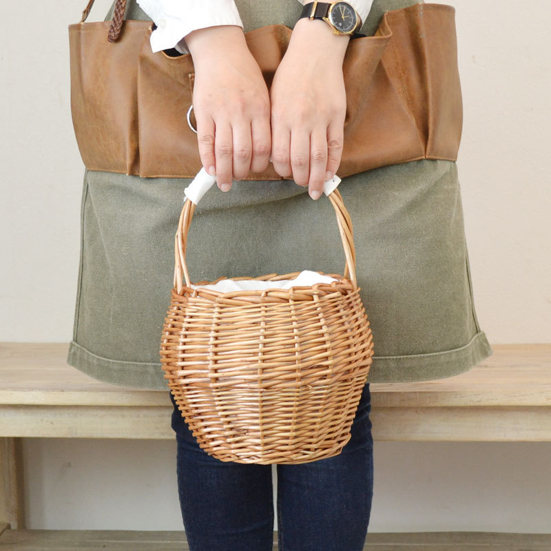 布付 柳 かごバッグ ウィロー ハンドバッグ 巾着 フタ