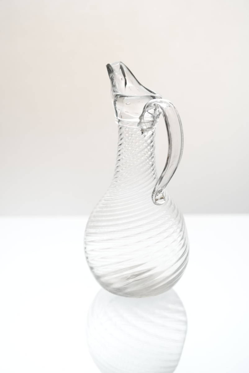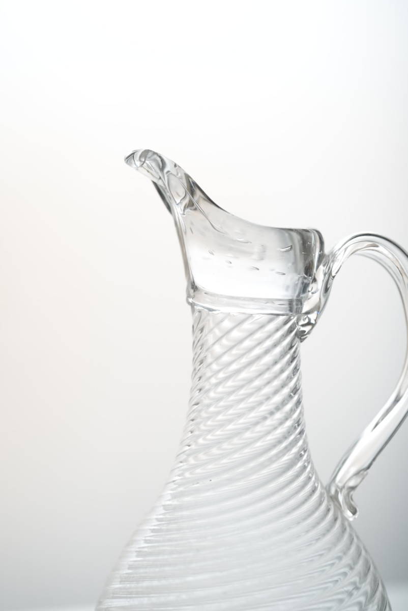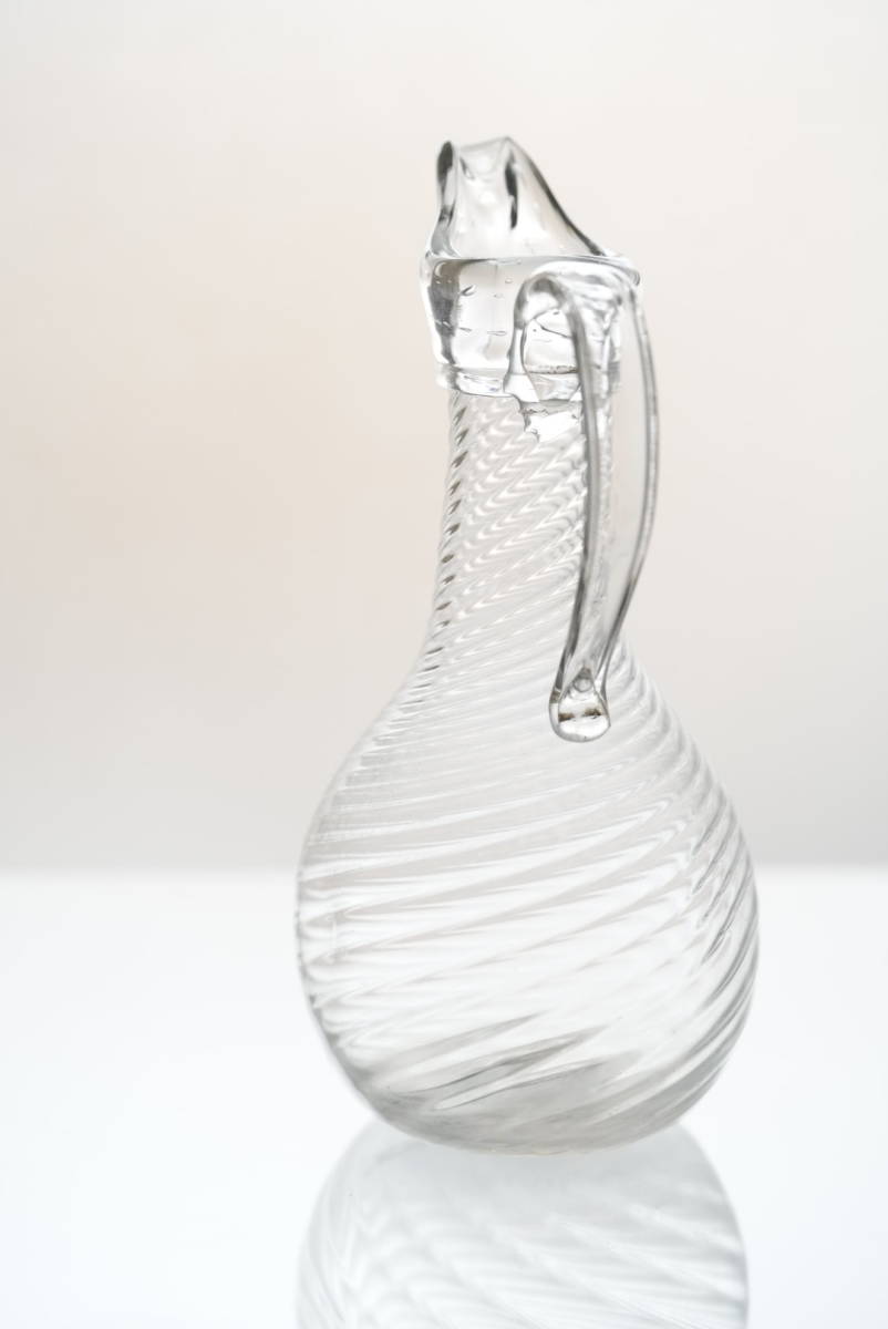 ツイストのモール模様に尖った口、中空の取手などの特徴があります。