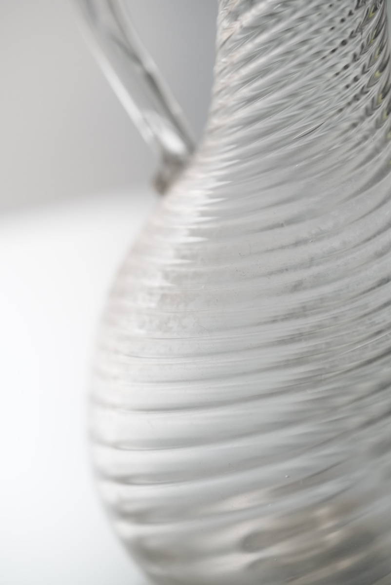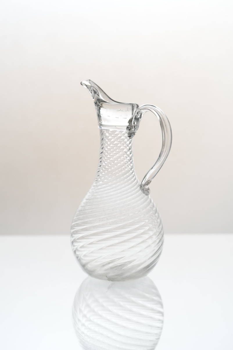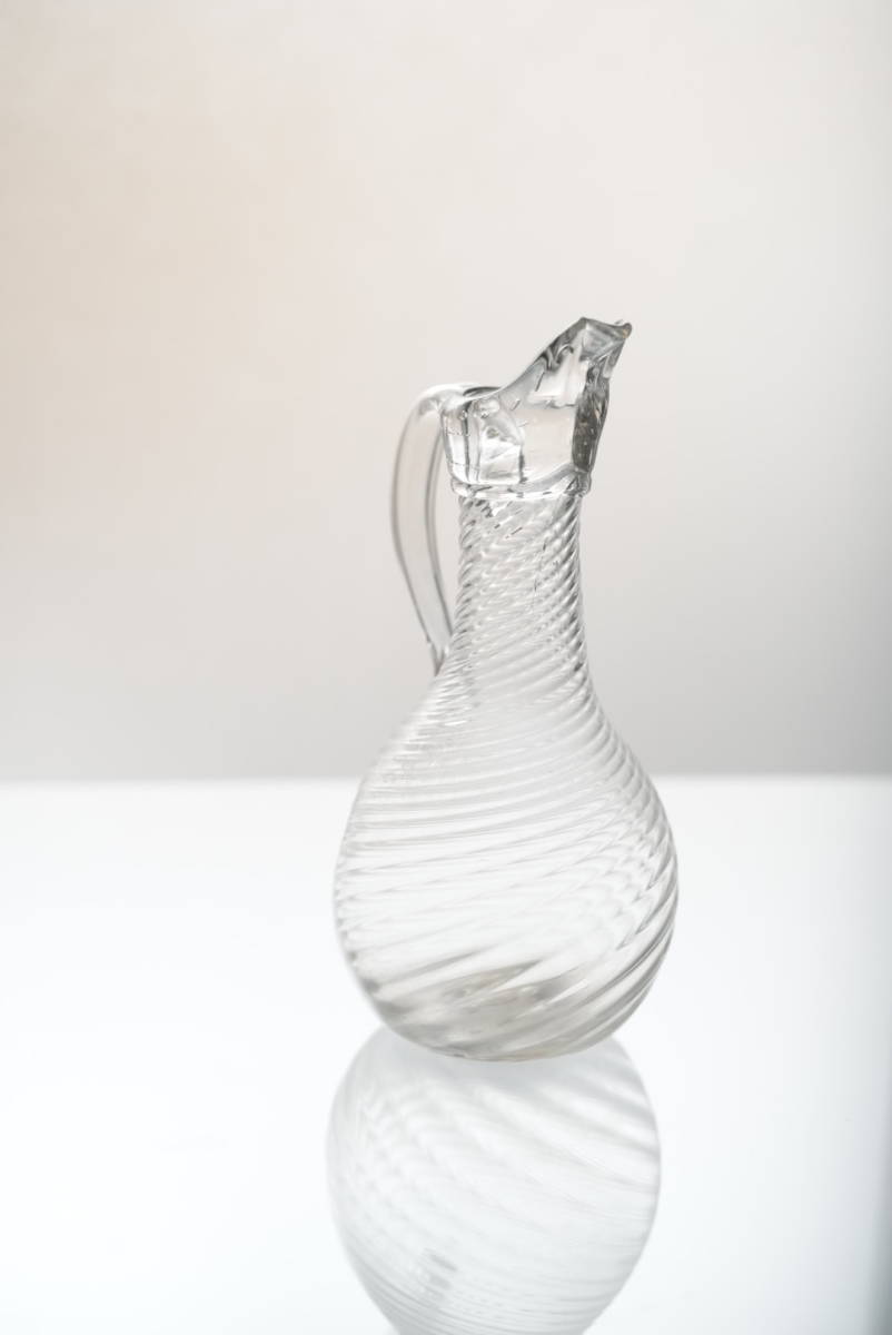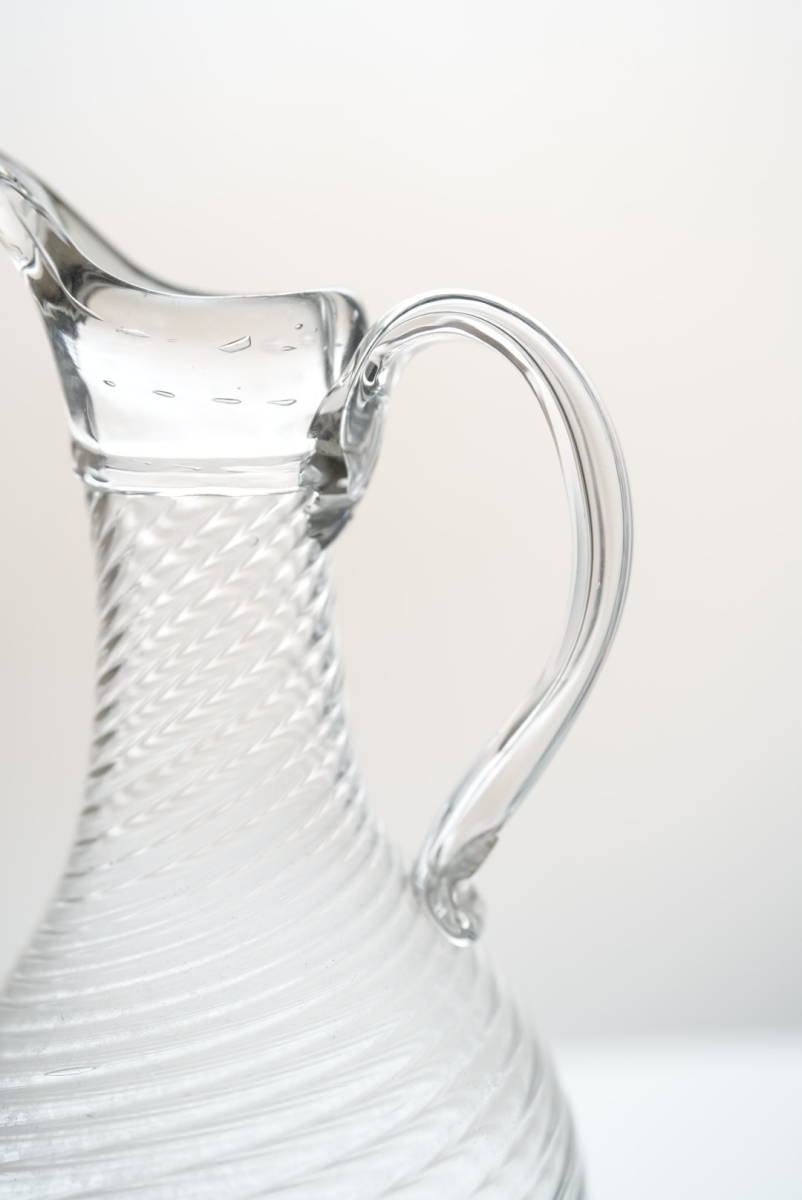 ツイストのモール模様に尖った口、中空の取手などの特徴があります。