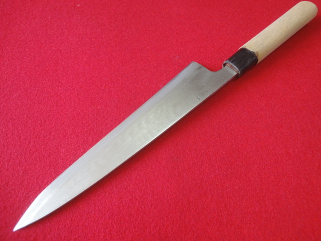 【丸勇】※請合 身卸出刃包丁 刃渡23.3㎝ 全長39.8㎝ 峰厚6mm ※片刃 中古品 全国一律送料1100円