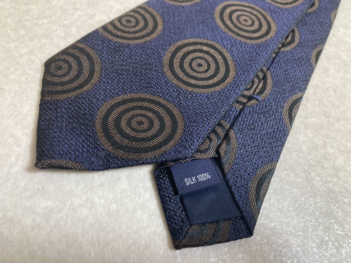 新品 シーワード&スターン(英) イングリッシュシルクタイ 濃いネイビー地に◎モチーフ大柄小紋 日本製 定価1.4万円