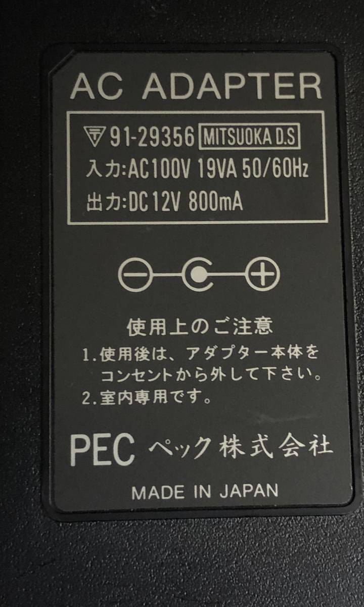 PEC ペック株式会社 アダプタ 型番不明 DC12V 800mA