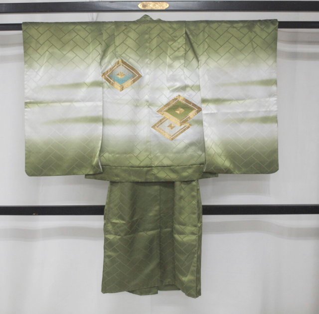貸衣装処分品 五歳男の子用祝い着 338 着物・羽織 緑(中古)〈レターパック不可〉