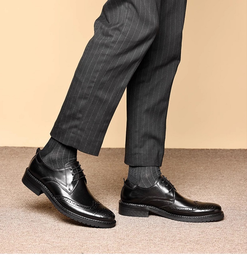 新作♪新品♪メンズビジネスシューズ 万能なレザーシューズ 牛革 ウイングチップ ♪ブラック DJ25cm