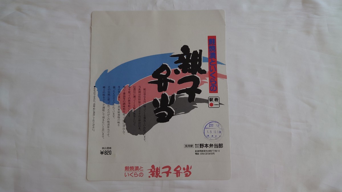 △野本弁当部・JR長岡駅△鮭焼漬といくらの親子弁当△駅弁掛け紙