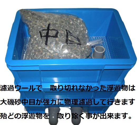 濾過材は 大磯砂 中目 細目で 必要十分です。
