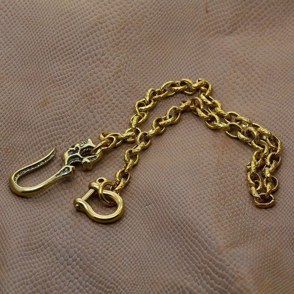 真鍮無垢の特殊チェーンを使用したウォレットチェーンになります。