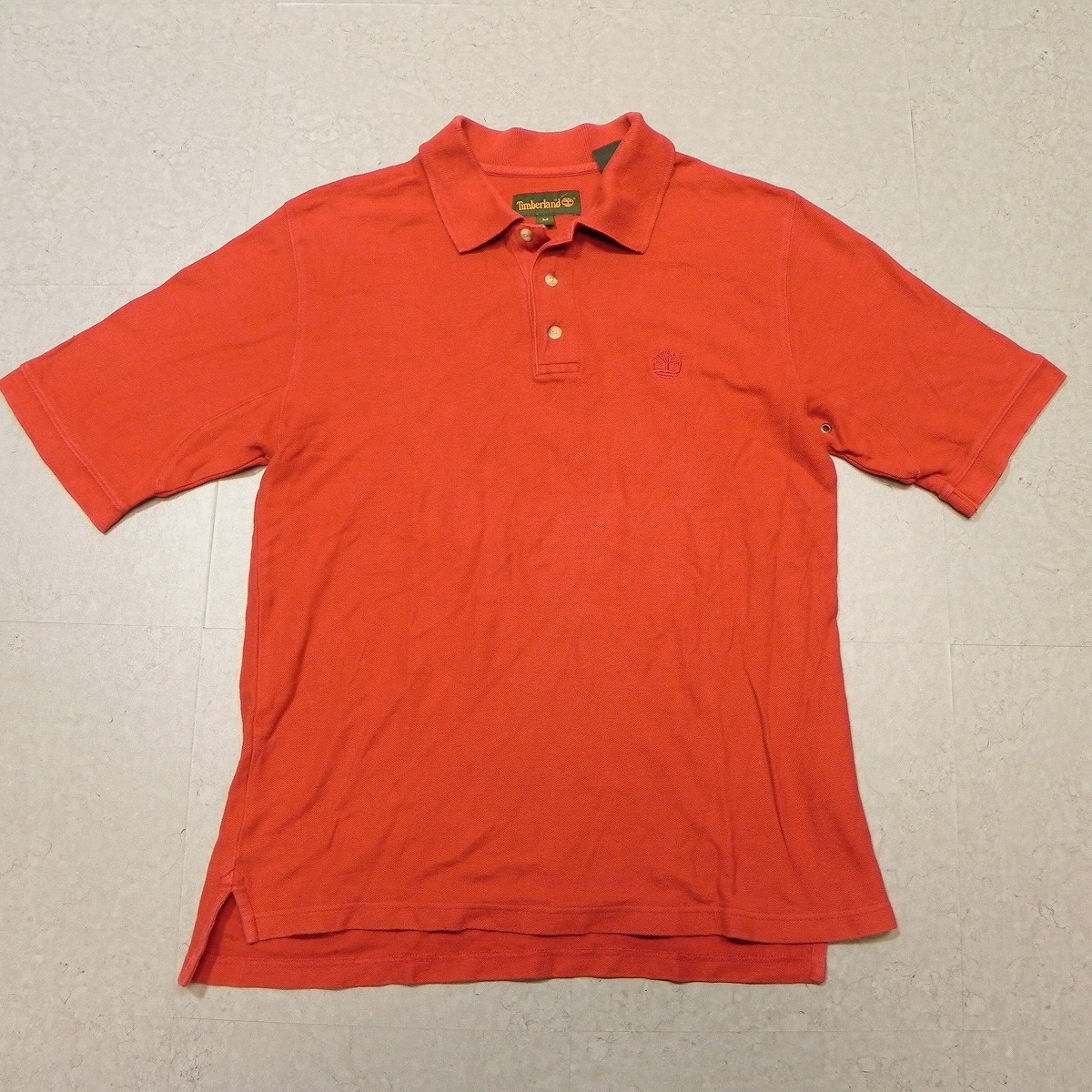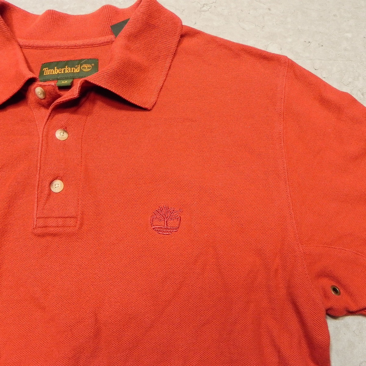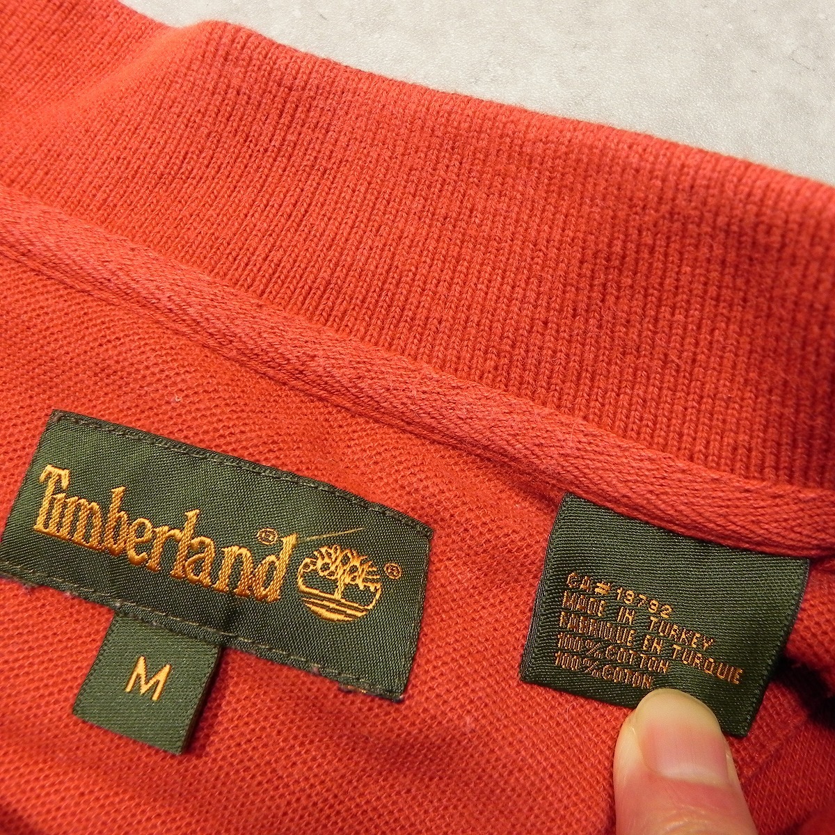 トルコ製 Timberland ティンバーランド 春夏 半袖 ロゴ刺繍 鹿の子 ポロシャツ Sz.M メンズ 赤茶色系 古着 即決 ★d