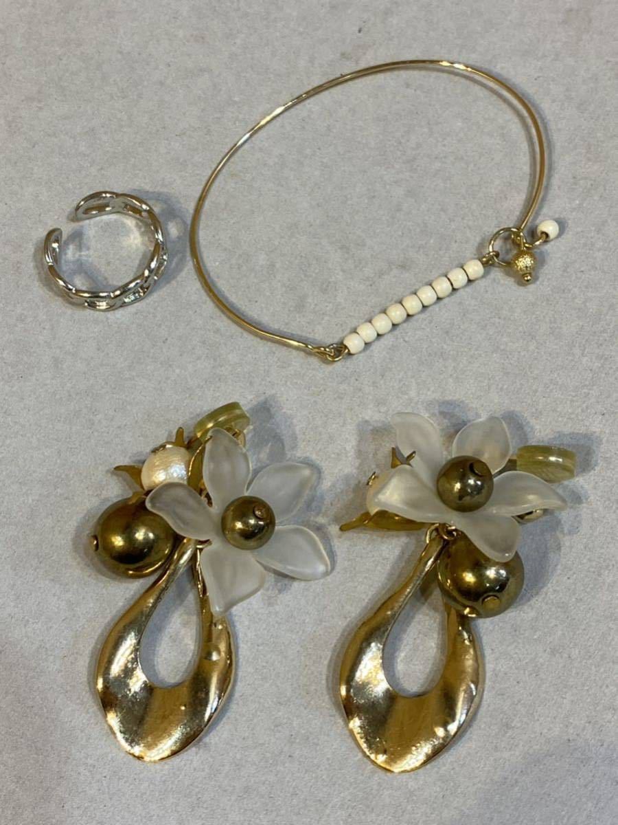 イヤリング 指輪 ブレスレット 3点 セット 花柄 アクセサリー