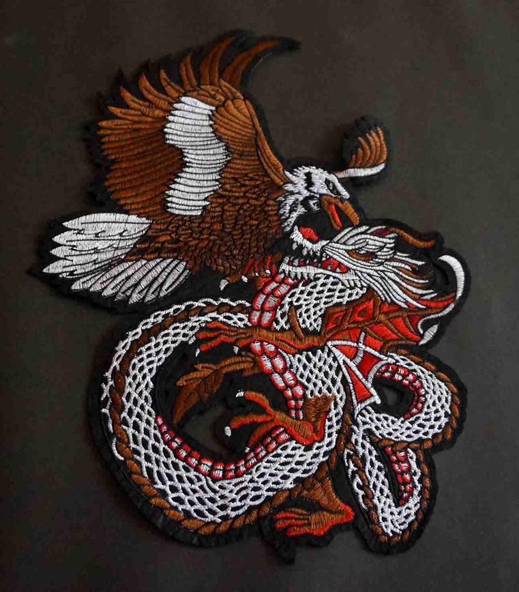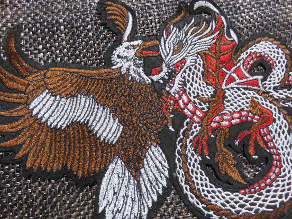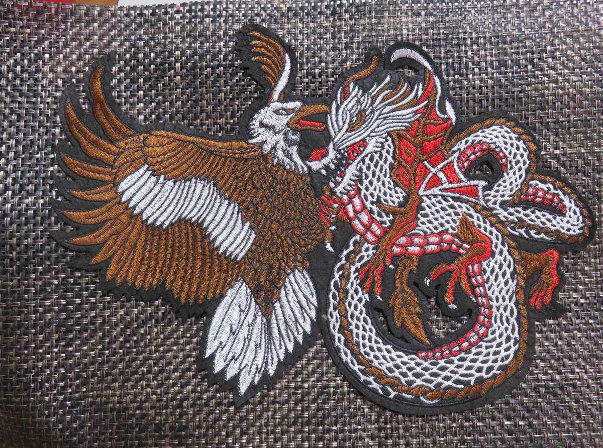 特大■『白茶龍鷲格闘』 ■圧着■ 新品■DRAGON ドラゴン鷲 Eagle 刺繍ワッペン ◆激シブ◇アート 芸術 美術 ■ミリタリー サバゲー■DIY