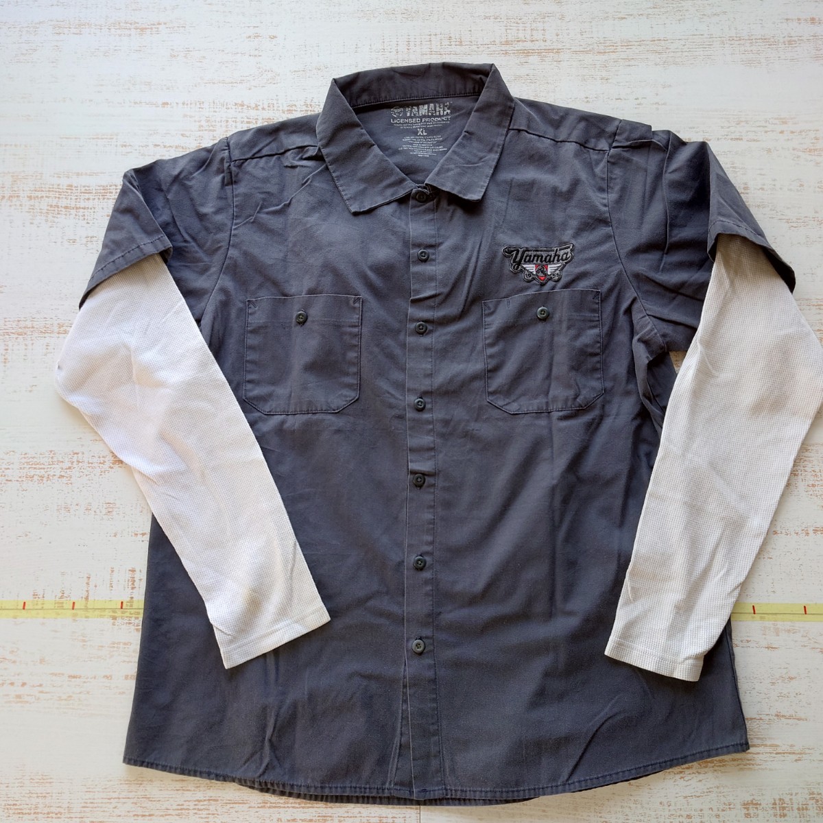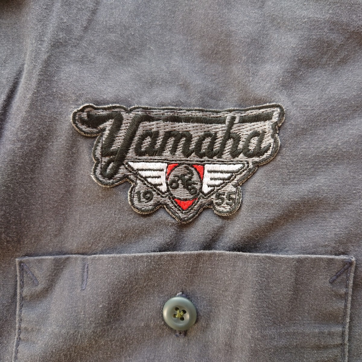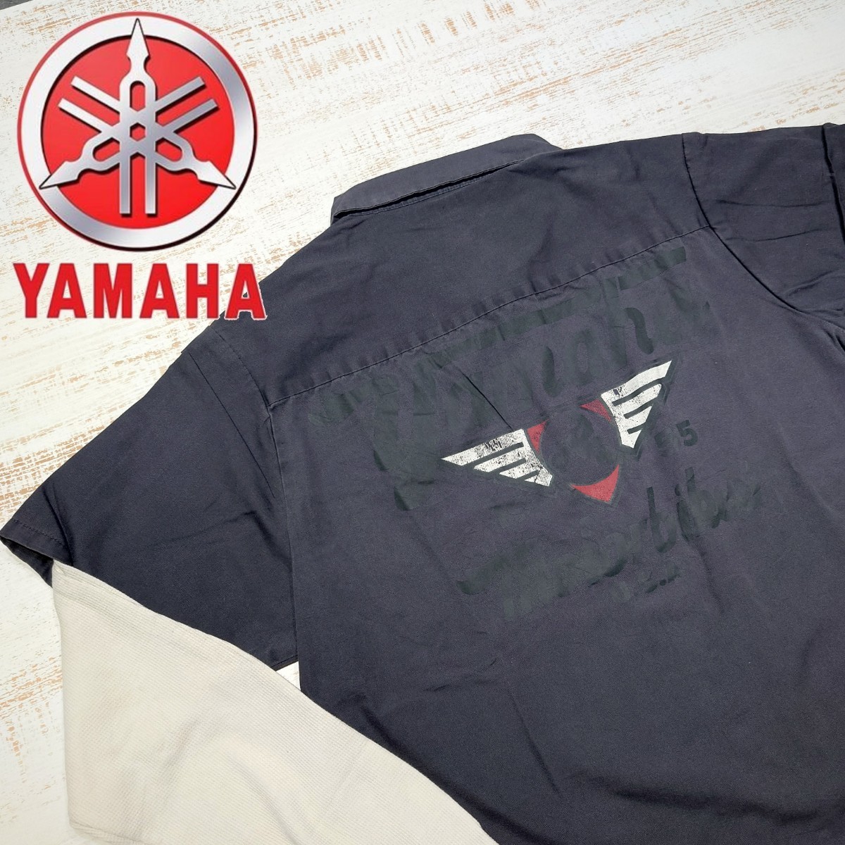 R7 ワーク シャツ YAMAHA 長袖 アメリカ 古着 XL バック プリント プリント 刺繍 ワッペン USA ヤマハ バイク RZ 250 YZF SR TZR 400 FZ TW