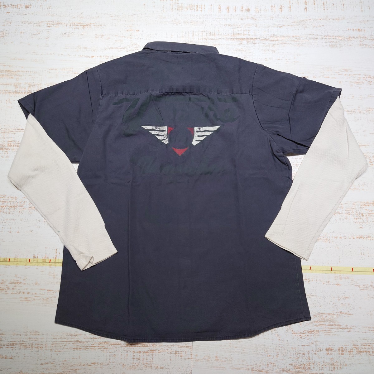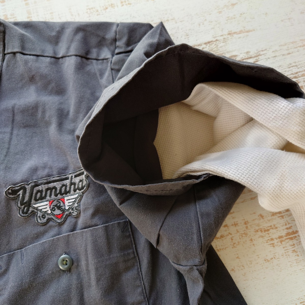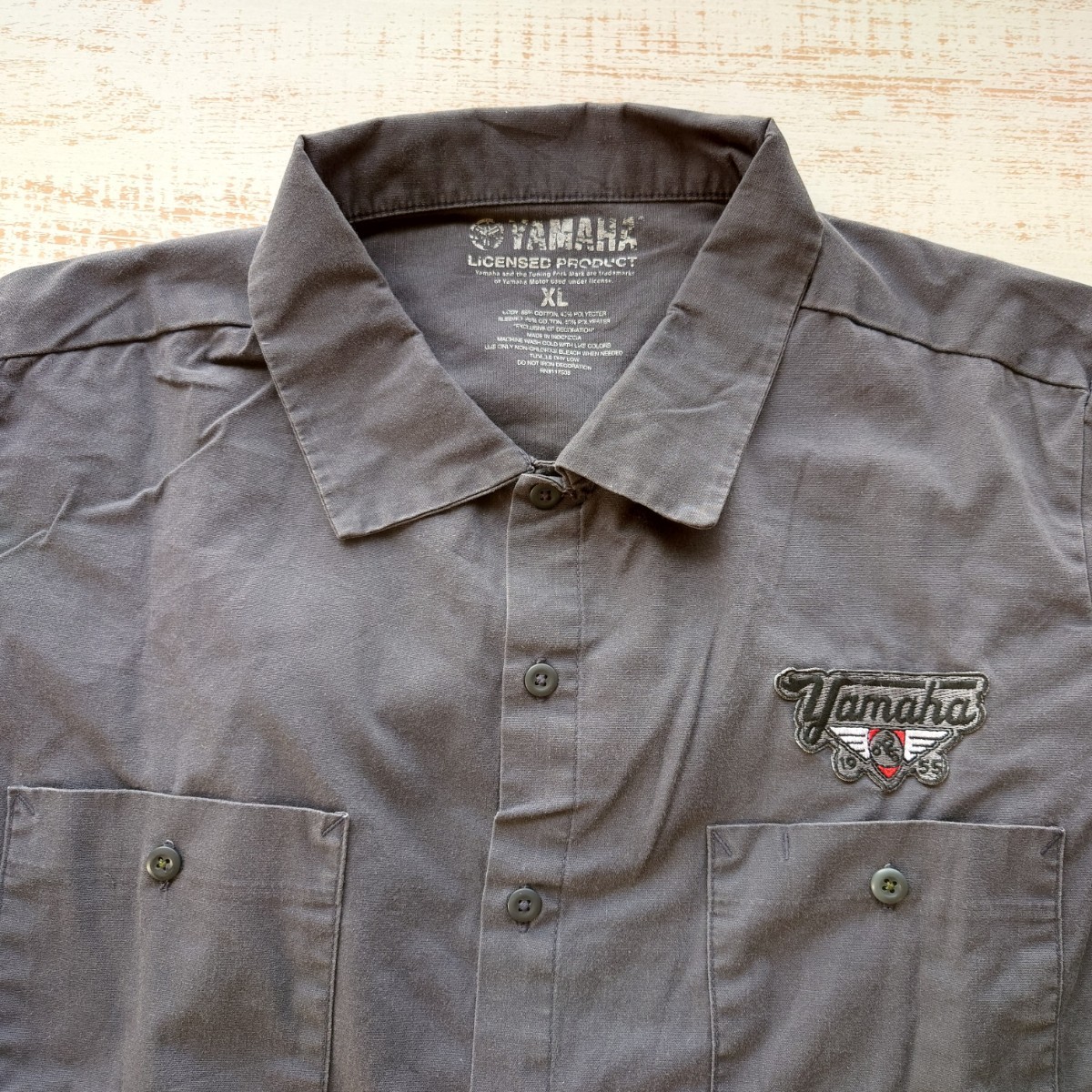 R7 ワーク シャツ YAMAHA 長袖 アメリカ 古着 XL バック プリント プリント 刺繍 ワッペン USA ヤマハ バイク RZ 250 YZF SR TZR 400 FZ TW