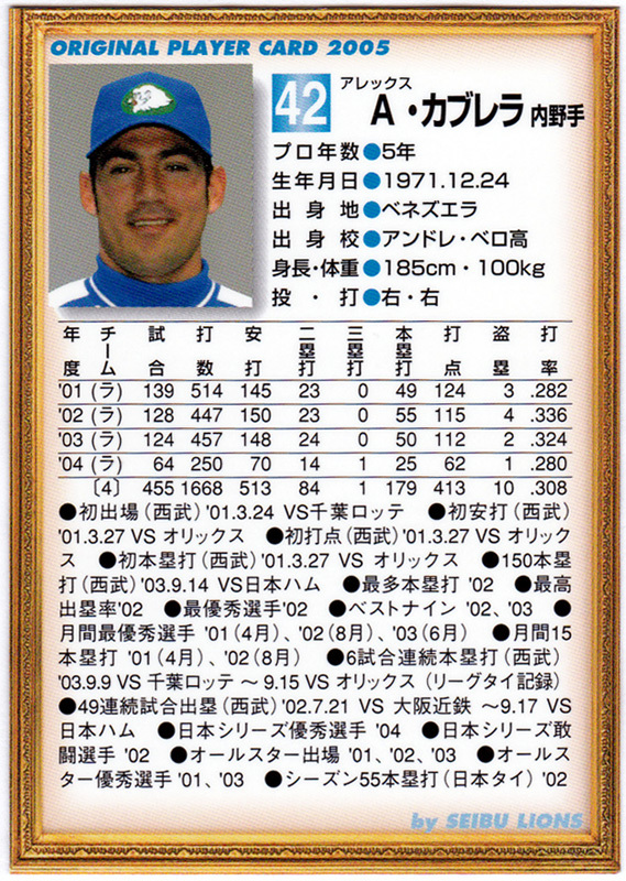 2005年 西武ライオンズ 球団発行 オリジナル 野球カード カブレラ
