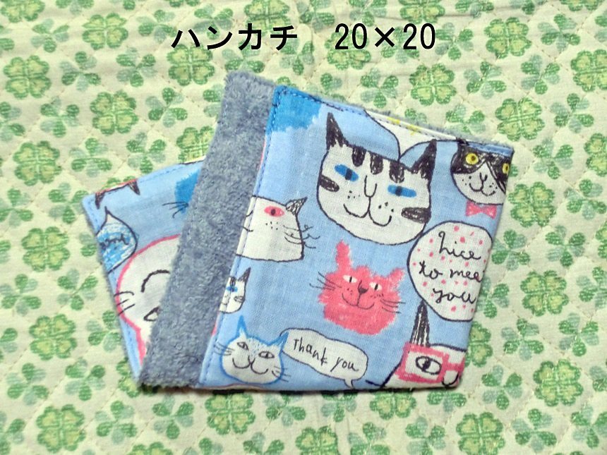 ★2295★猫フェイス★ハンカチ★20×20㎝★ダブルガーゼタオル★handmade★