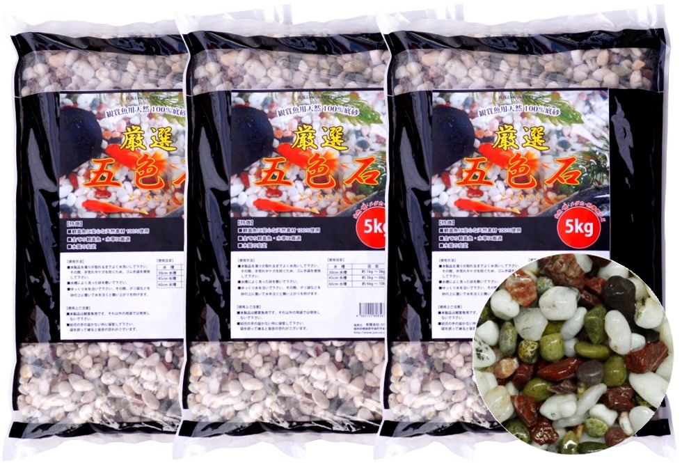 厳選 五色石 5kg入×3袋セット 砂利 底砂 水槽 インテリア 金魚 メダカ 熱帯魚