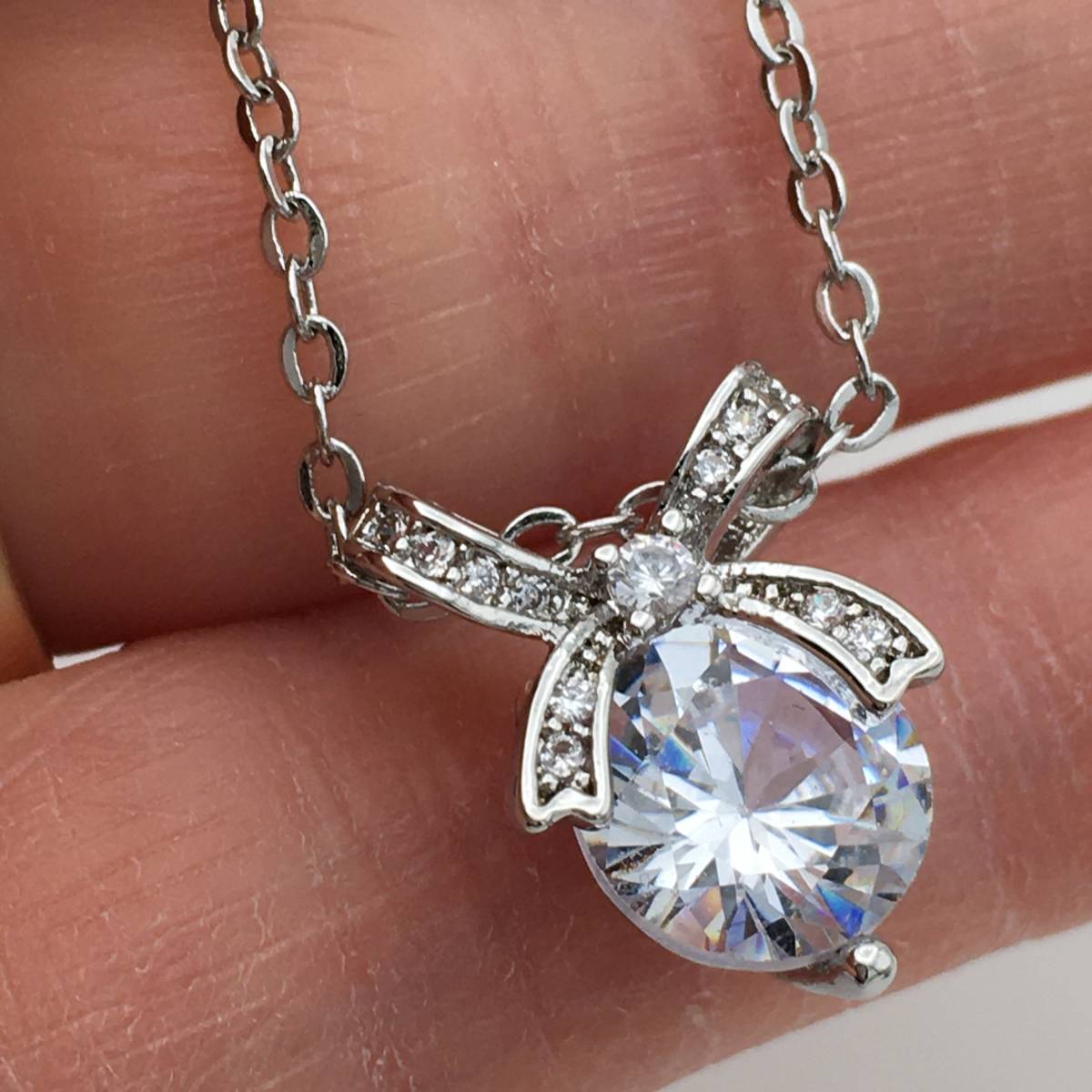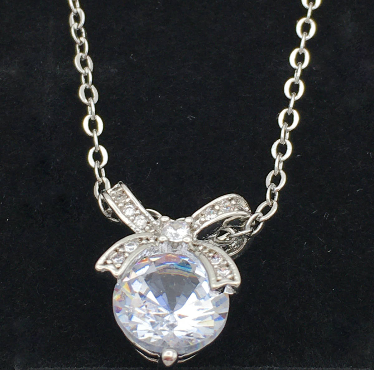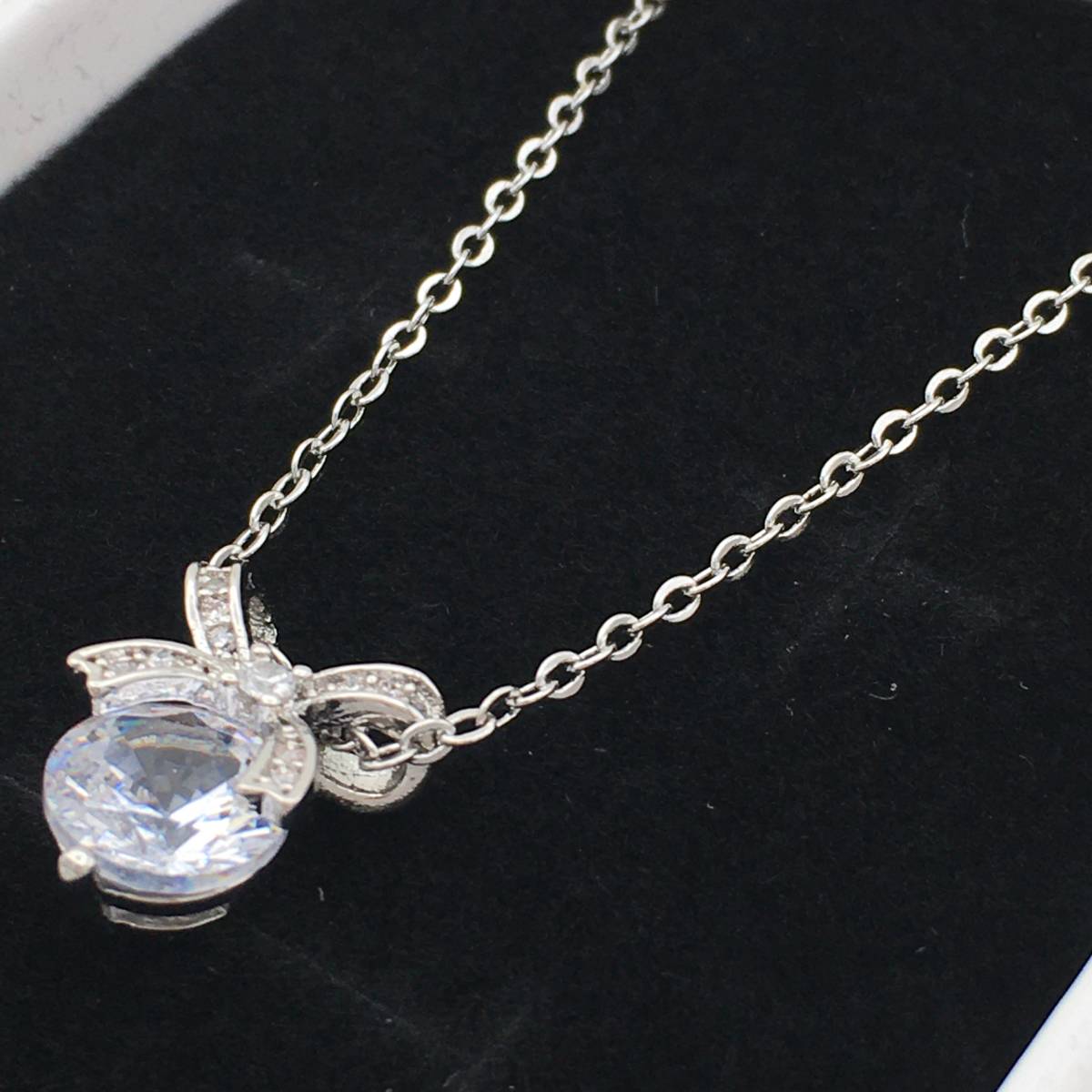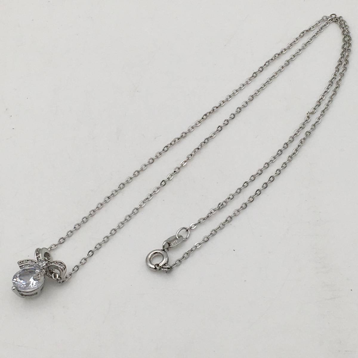 スターリングシルバー925 リボン クリスタル CZ ネックレス