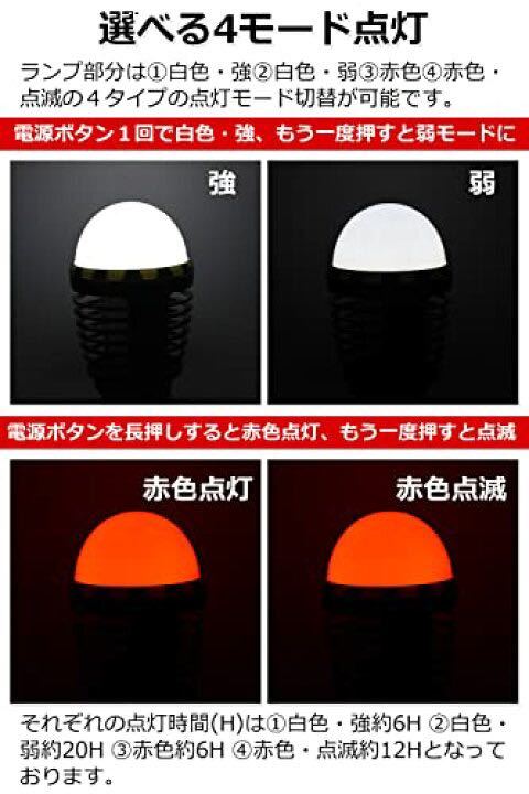 充電式なのでどこへでも持ち運び可能♪ パソコン、スマホの充電器、持ち運び充電器など様々な機器で充電できるので、出先で万が一充電が切れても、即チャージでき安心です。本製品にはUSBケーブルが予め付属しております! 【 選べる4モード点灯 】 白色・強 白色・弱 赤色 赤色・点滅の4タイプの点灯モードからお選びいただけます。電源ボタン1回で白色・強、もう一度押すと弱モードになり、電源ボタンを長押しすると、赤色点灯モードに切り替えられます。また、それぞれの点灯時間(H)は、白色・強6H 。白色・弱20H 。赤色6H 。赤色・点滅12Hとなっております。