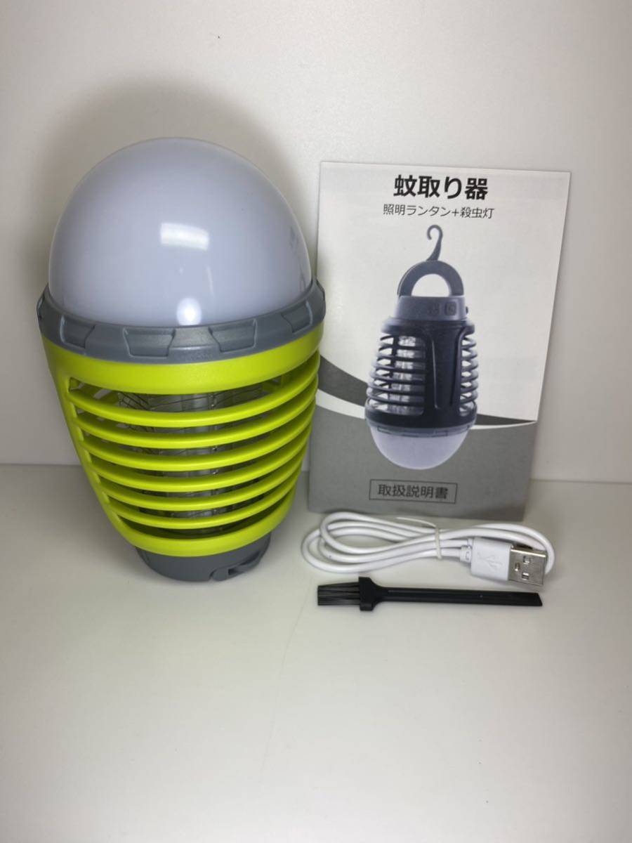 USB充電式 電撃殺虫器 LED ライト 蚊取器 殺虫灯 2in1 キャンプ アウトドア ライトグリーン
