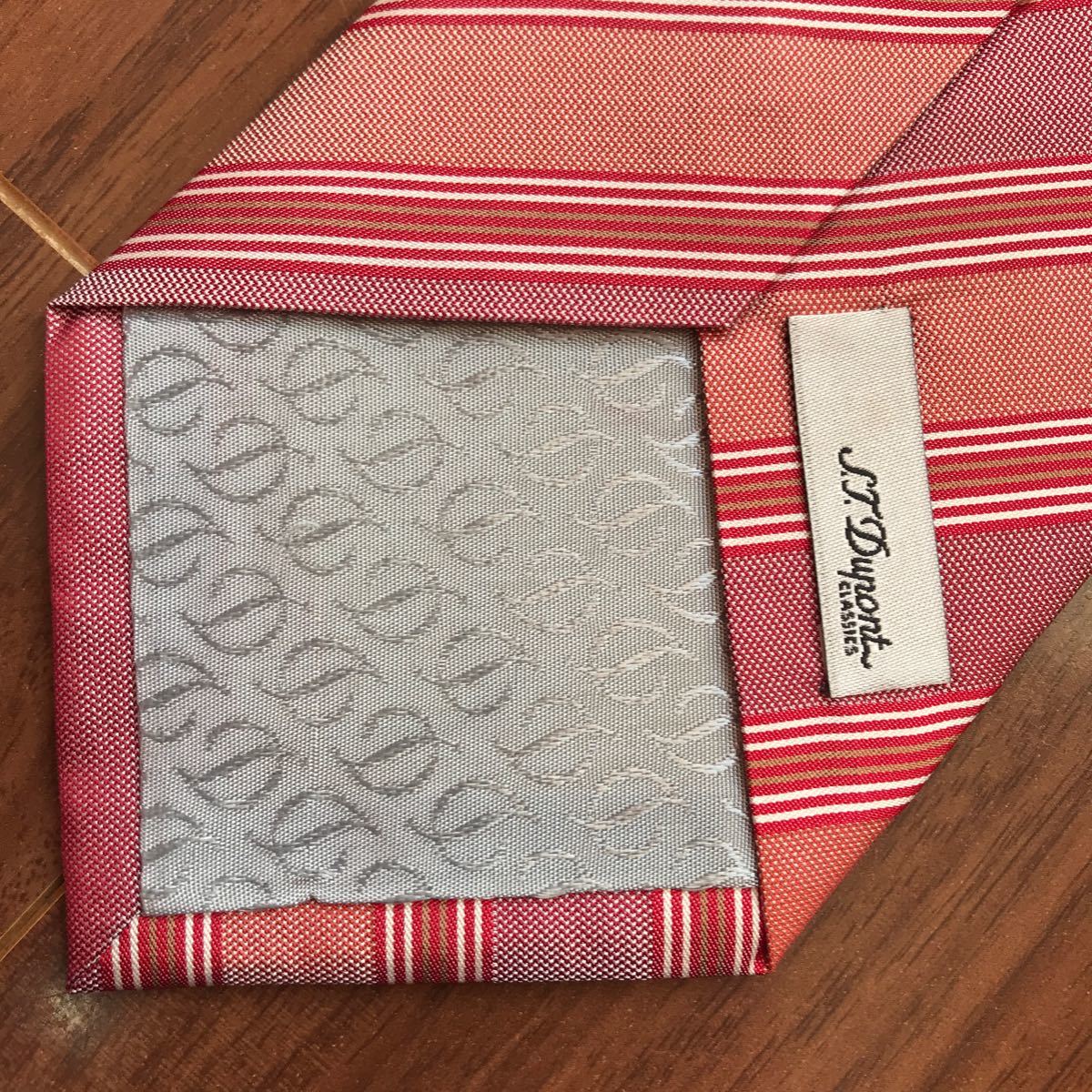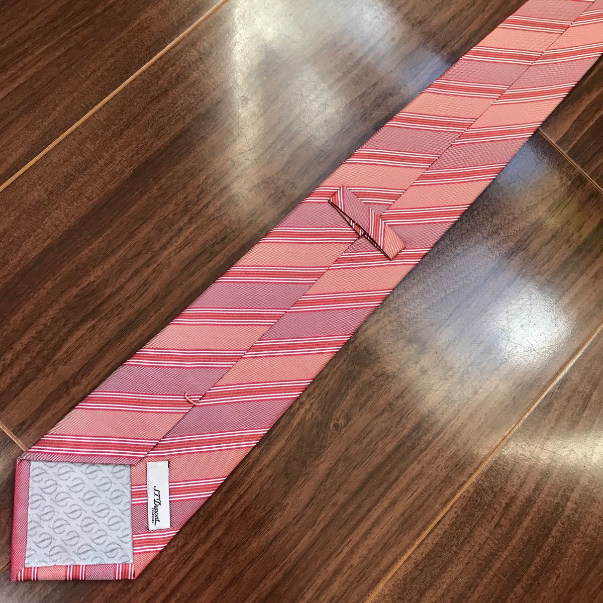 S.T.Dupont デュポン ネクタイピンク 赤 ボーダー