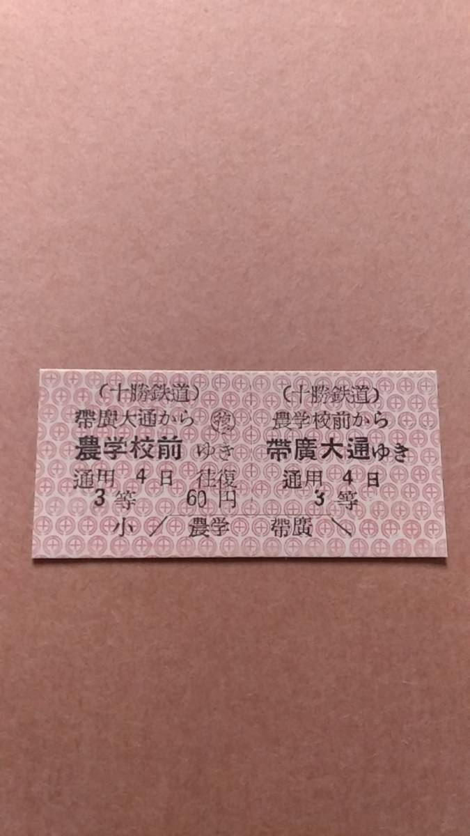十勝鉄道 往復 農学校前⇔帶廣大通 3等 60円 軟券