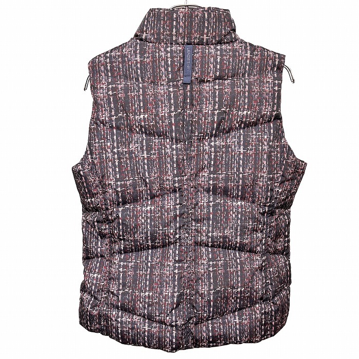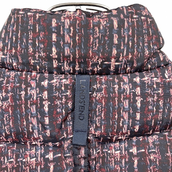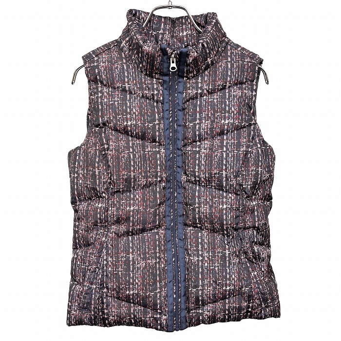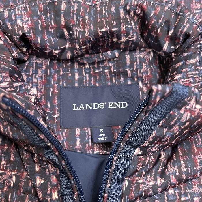 商品タイトル | ランズエンド LANDS END ダウンベスト ハイネック ニット柄 ポリ100%(ダウン80%+フェザー20%) S レッド系 赤系×紺×ピンク レディース |