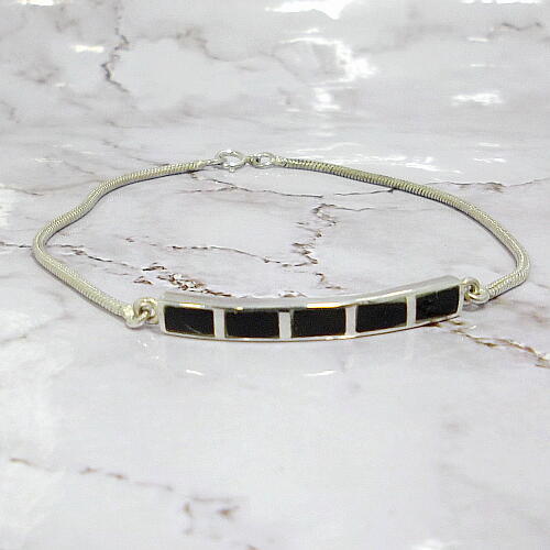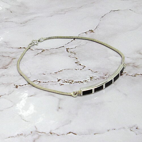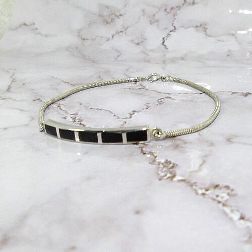 | 送料無料!インレイ・オニキスのシルバー925製スネークタイプ・ブレスレット! | |