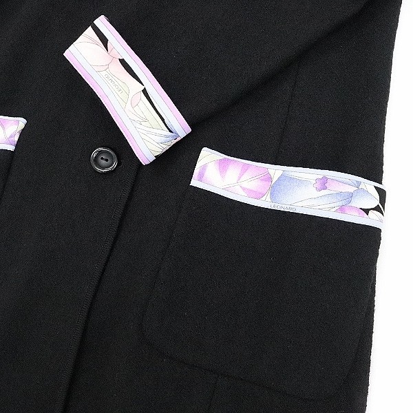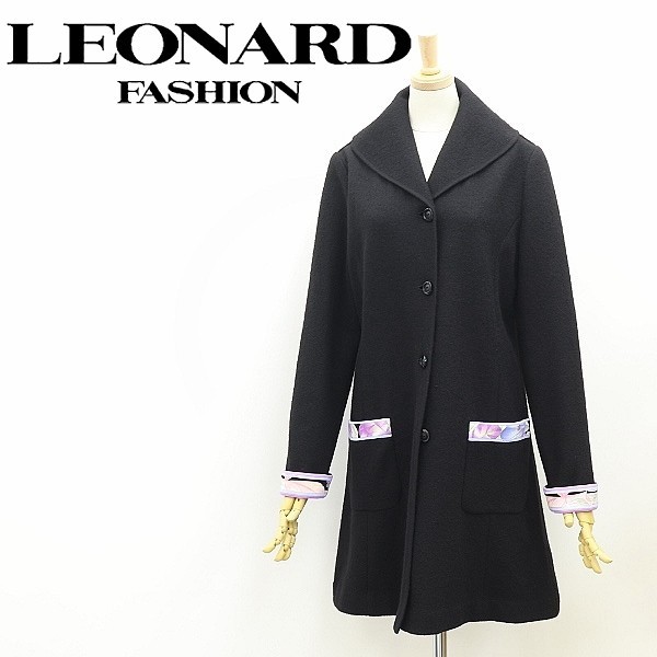 | 美品◆LEONARD レオナール 花柄使い ショールカラー ウール コート 黒 ブラック 40 | |