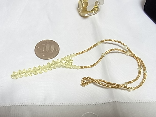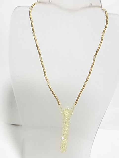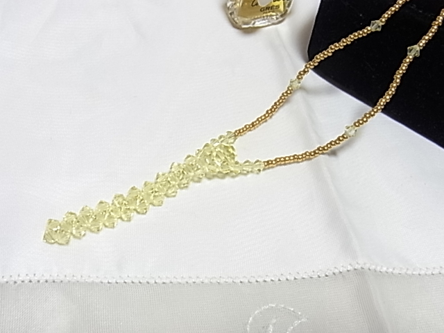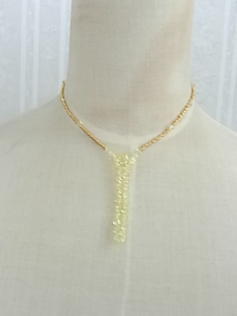 きらきら光るカナリア色のビーズ装飾に黄金色の極小ビーズも美しい Y字デザイン エレガントにもカジュアルにも素敵なネックレス◇◇