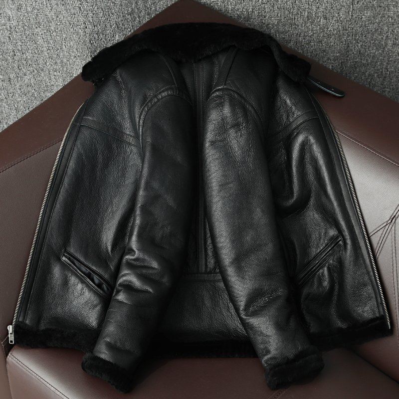 フライトジャケット ムートン コート 羊革 毛皮一体 保温 本革 防寒服 ラムレザー 天然革 ウール M~5XL
