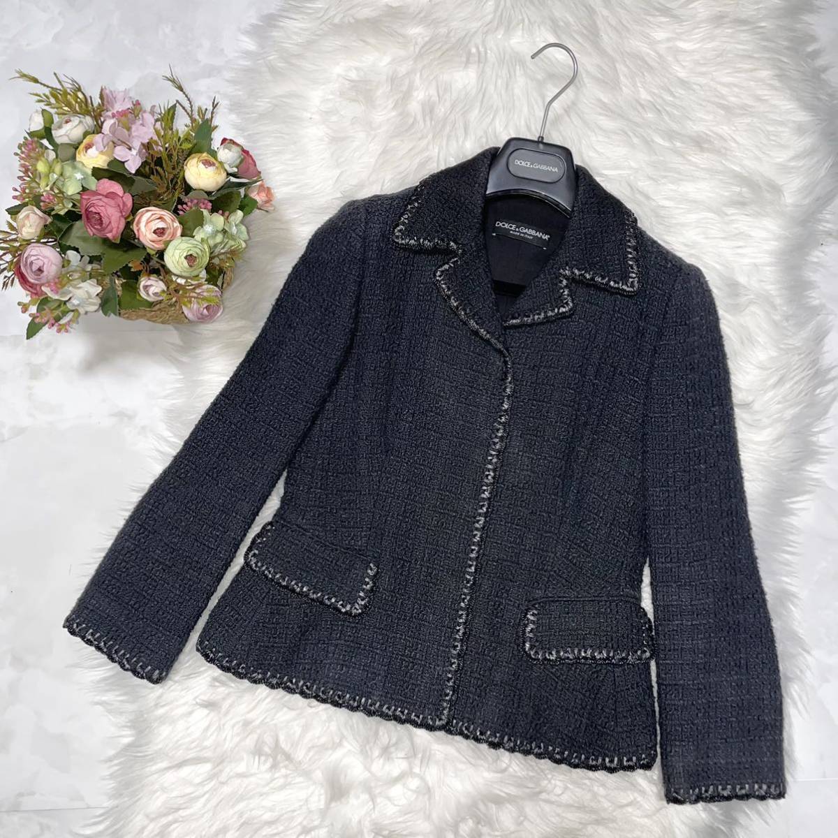 本物 ドルチェ&ガッバーナ パイピング装飾 テーラード ジャケット 36 ブラック 黒 ドルガバ DOLCE&GABBANA 入学式 卒業式 セレモニー | |||