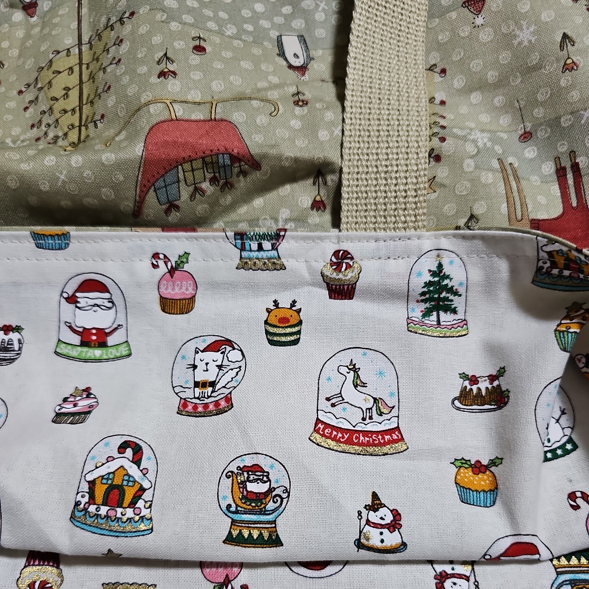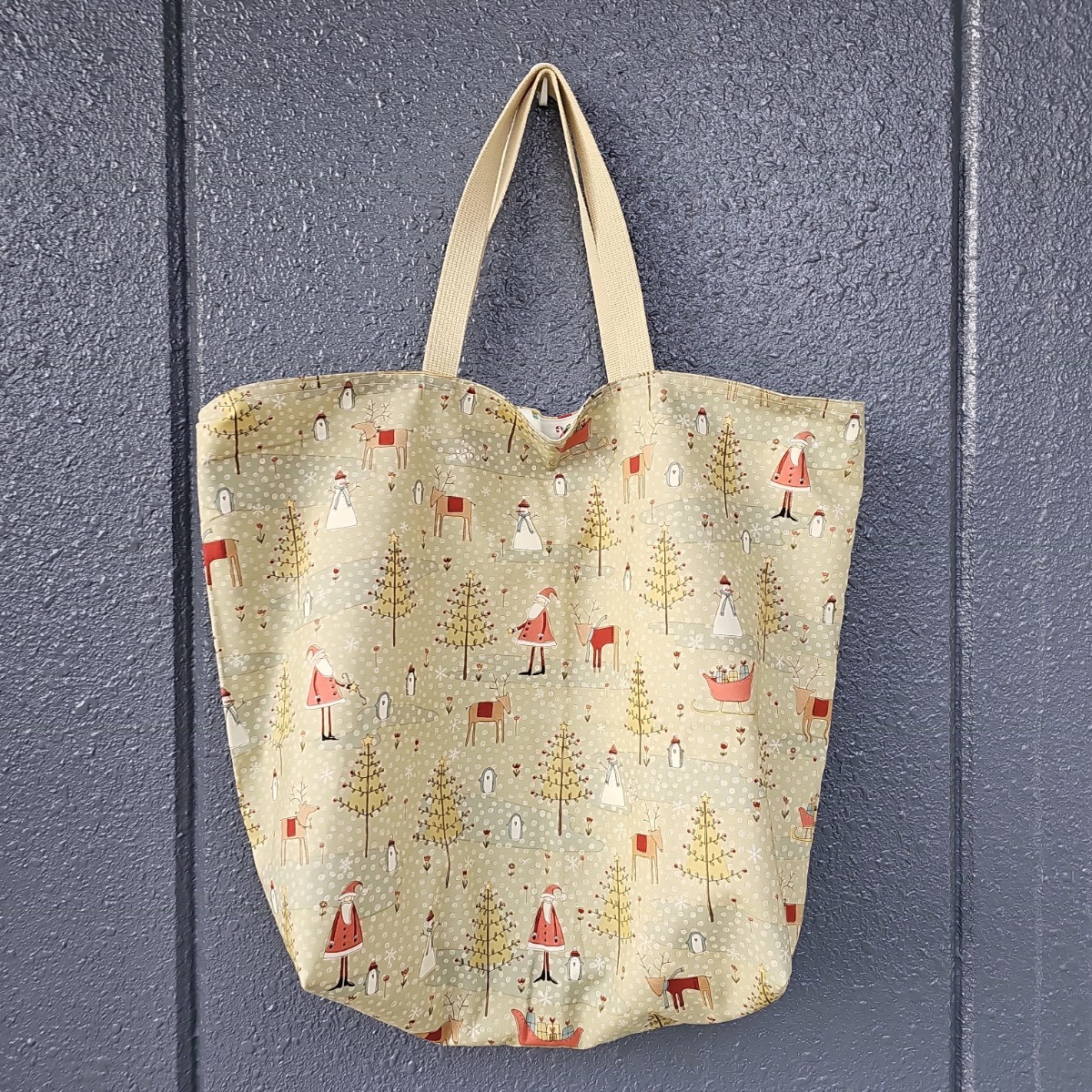 サイズは、高さ40cm、横 上部54cm、底部38cm、マチ15cm、ヒモ49cmです。