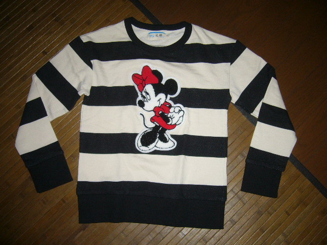 479-56子供♀:Disney ディズニー ライトオン ディズニー ミニーワッペン size.140 色.白黒ボーダー