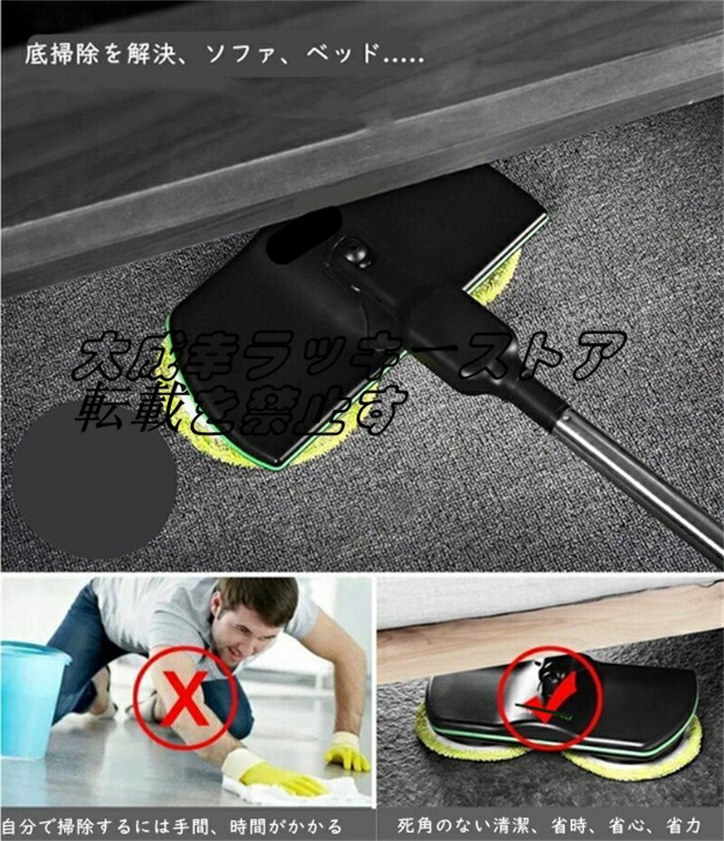 新品 電動モップ ツインモップ 床を引っ張る 水拭き 回転モップクリーナー 掃除 長さ調節可能 USB充電式 コードレス