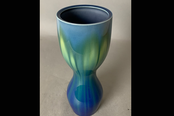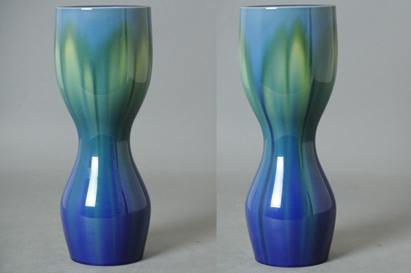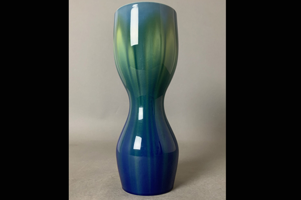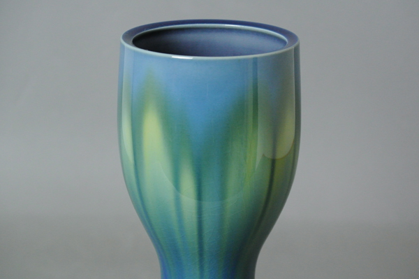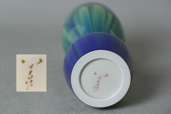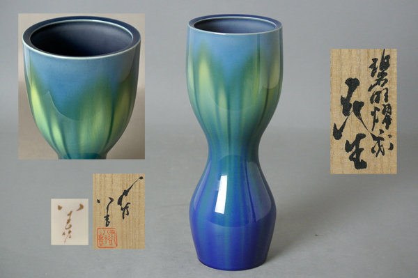 | 【 三代 徳田八十吉 金銘 碧明燿彩 花生 共箱・共布・栞付き】 |