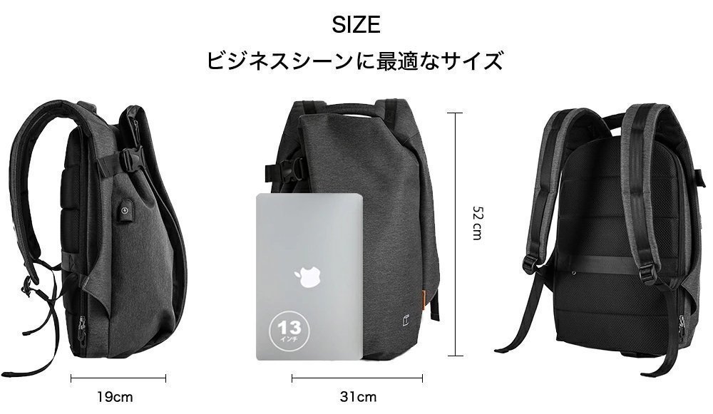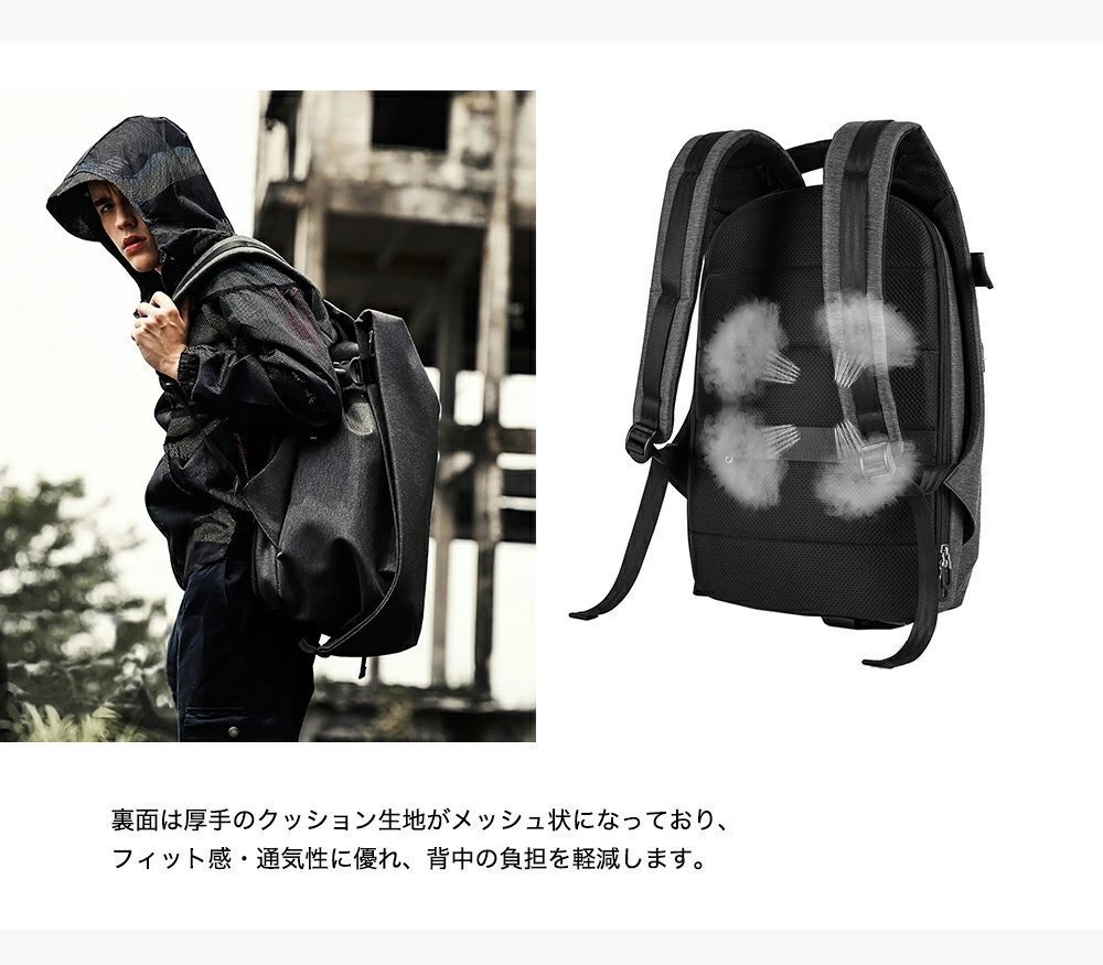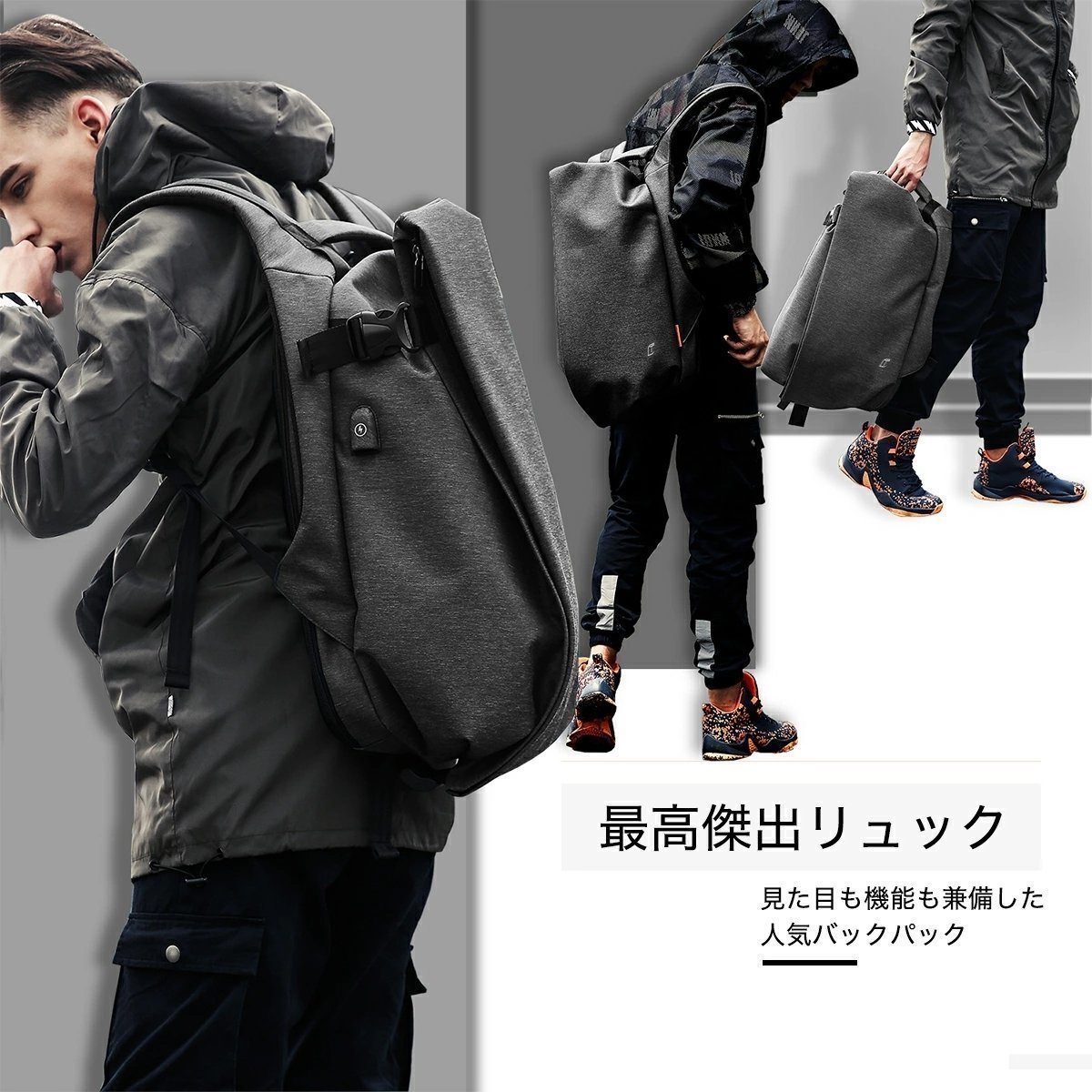 【USBポート付き】リュックサックの側面にUSBポート付き、リュック中収納のモバイルバッテリに連続でき、お手元のスマートフォンを充電できます。気楽に片手で携帯電話が使えます。
