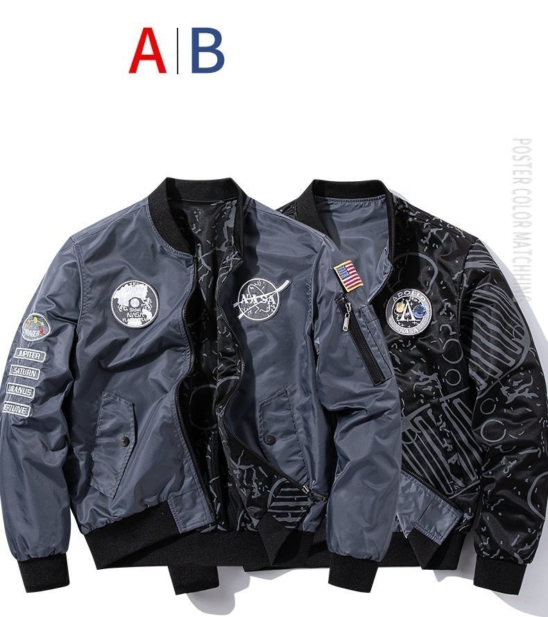 欧米 両面服 リバーシブル 空軍 NASA フライトジャケット スタジャン ミリタリージャケット メンズ アウター新品 M~6XL グレー