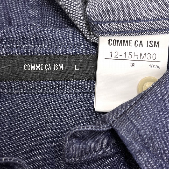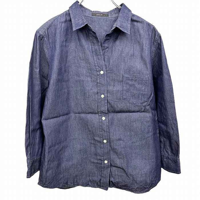 商品タイトル | コムサイズム COMME CA ISM スキッパーシャツ オープンカラー 7分袖 無地 胸ポケット 綿100% コットン L ヘザーネイビー 杢紺 レディース |
