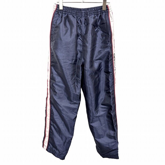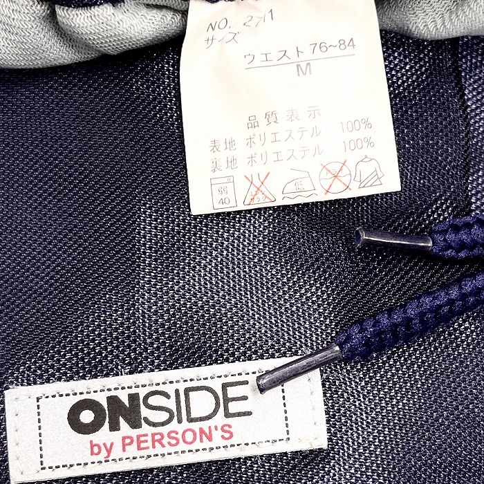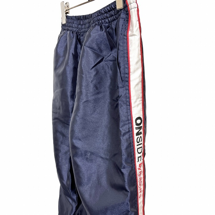 | 商品タイトル | パーソンズ ONSIDE by PERSON'S パンツ テーパード ロゴプリント 裏地付き ウエストにゴムと紐 ポリ100% M ネイビー 紺×赤×白 メンズ |