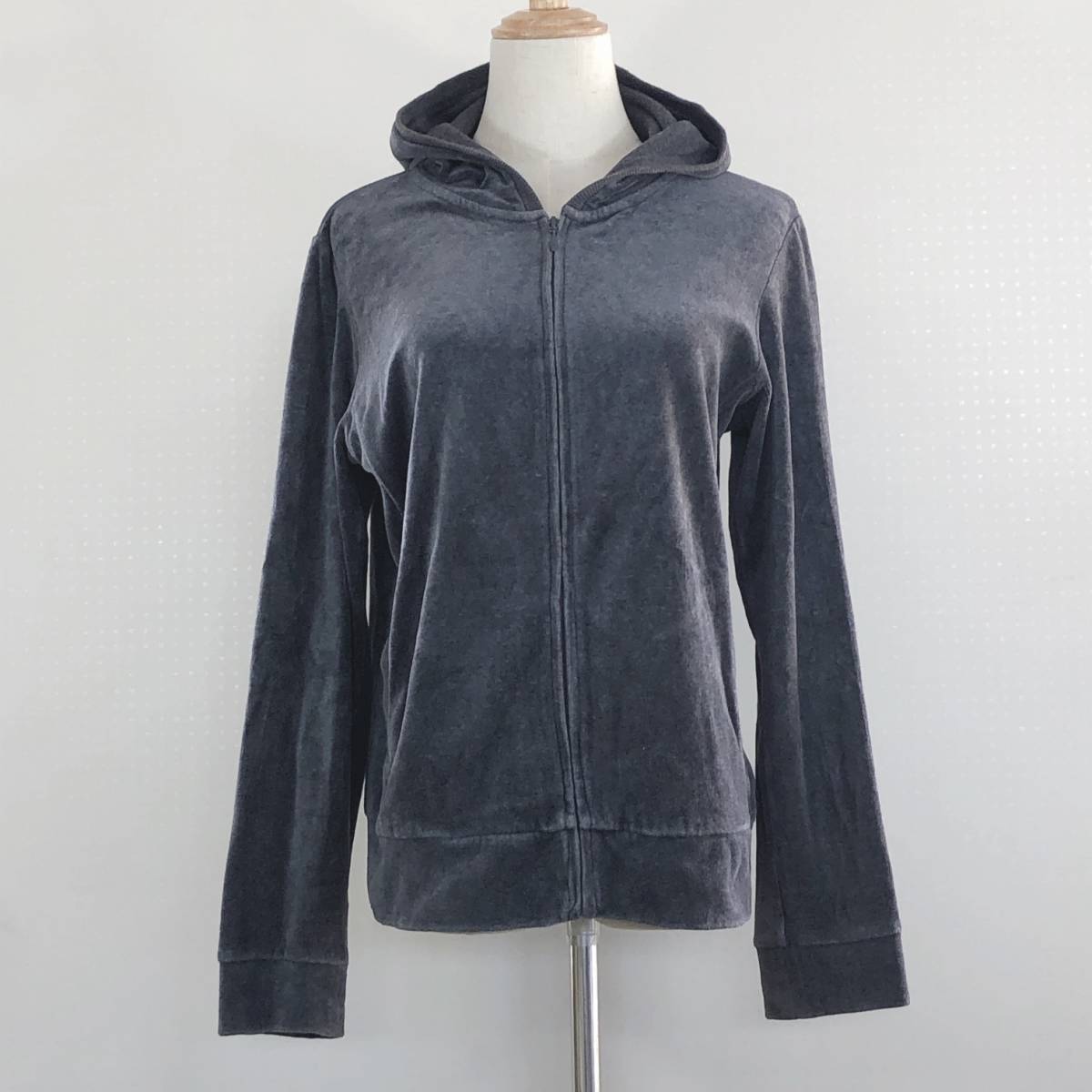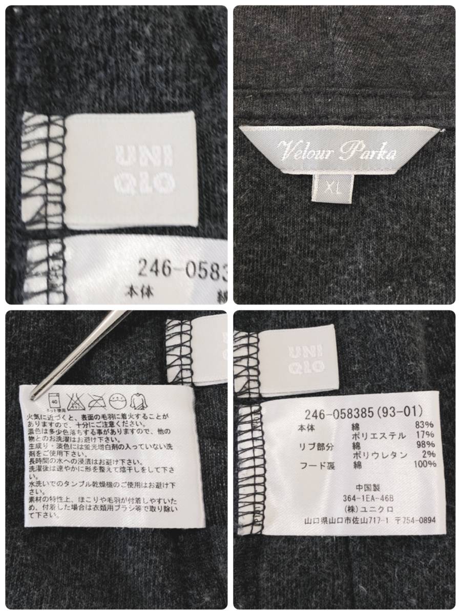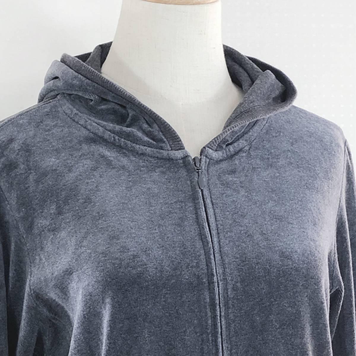 Y0142 UNIQLO ユニクロ レディース トップス ジップパーカー 長袖 ベロア XLサイズ グレー 灰 無地 綿素材含 シンプルデイリーカジュアル