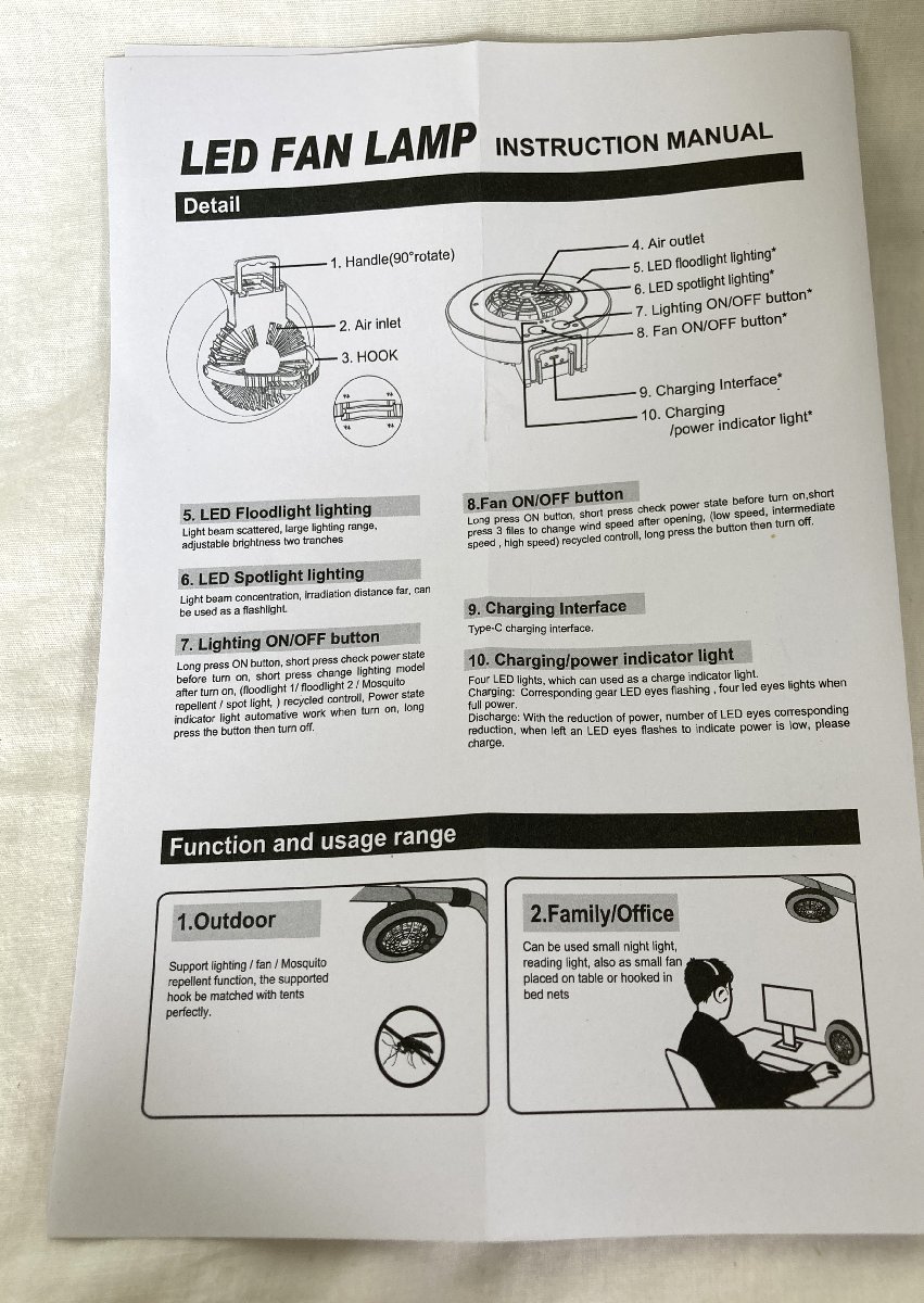 アウトドア活動ではなく、普通用のミニ卓上扇風機、車中泊、車の整備灯としても使えます。