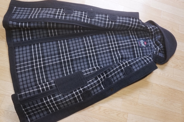 張り感の有るメルトンウール生地、裏のチェック柄がお洒落です。