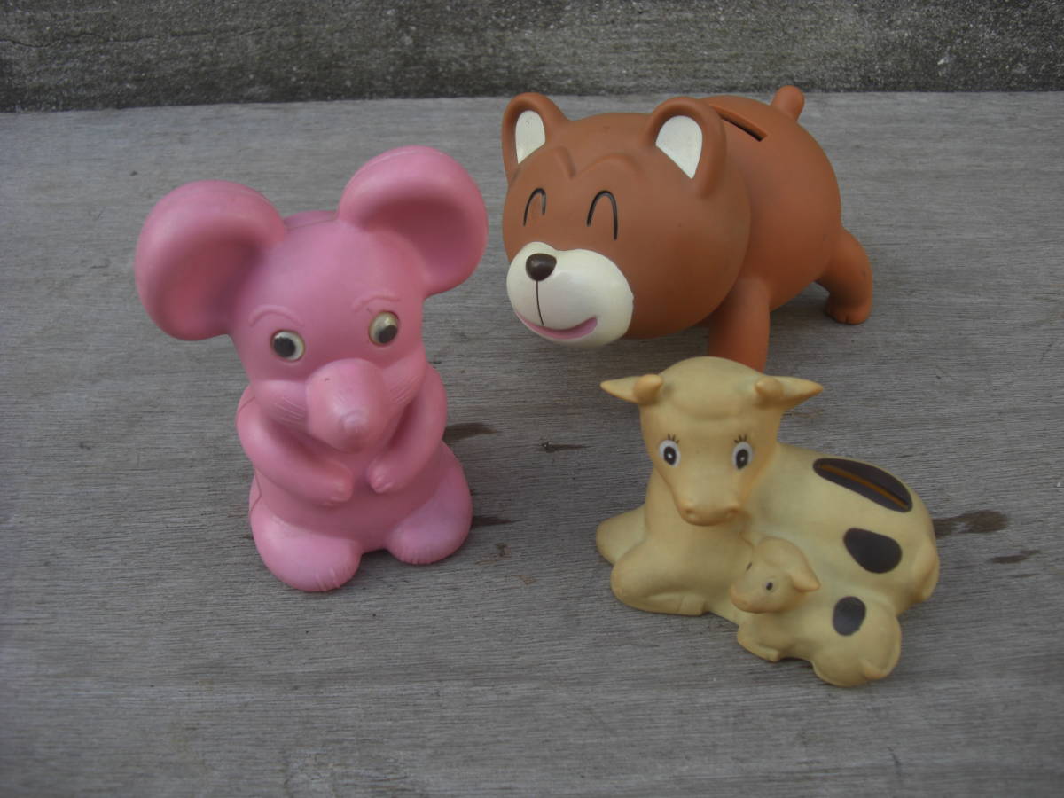 Qn607 非売品 銀行貯金箱 郵便貯金 郵便局 農協 他 ソフビ 貯金箱 レトロ ヴィンテージ 骨董 古玩 3体まとめて 60サイズ